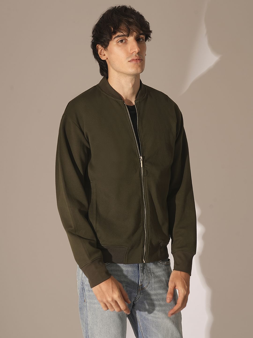 Dark Green Jersey Bomber Jacket