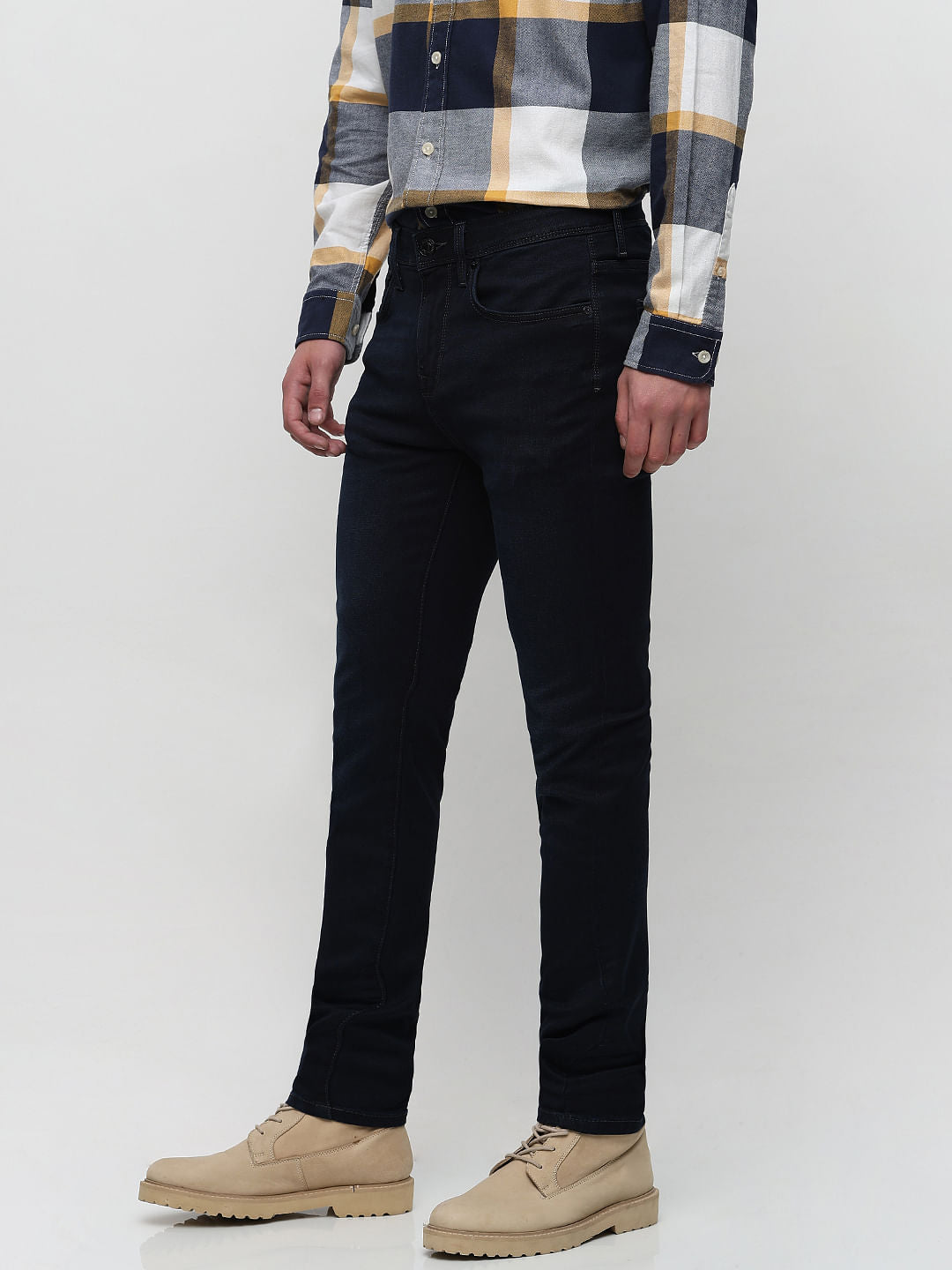 Dark Blue Mid Rise Leon Slim Fit Jeans