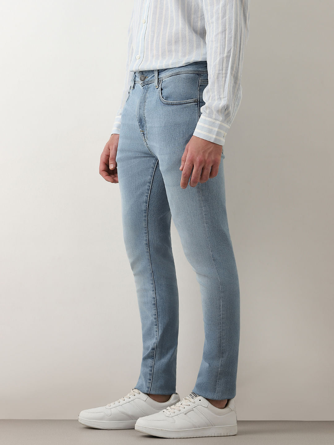 New season means new denim. These jeans have a comfortable mid-rise waist and a slim fit from the knee down. They are made of light and durable organic cotton, making them a new, long-lasting style in your wardrobe. Their faded pale blue wash gives them a casual, relaxed look that's perfect for weekend wear. Style them with checked flannel and leather boots.