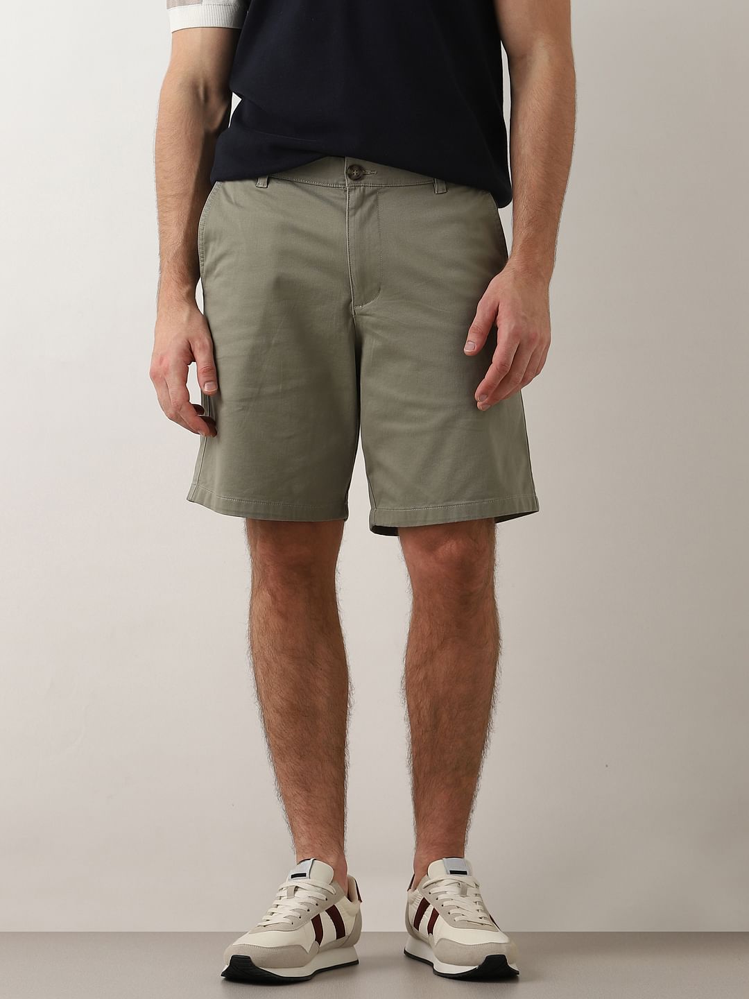 Green Mid Rise Cotton Chino Shorts