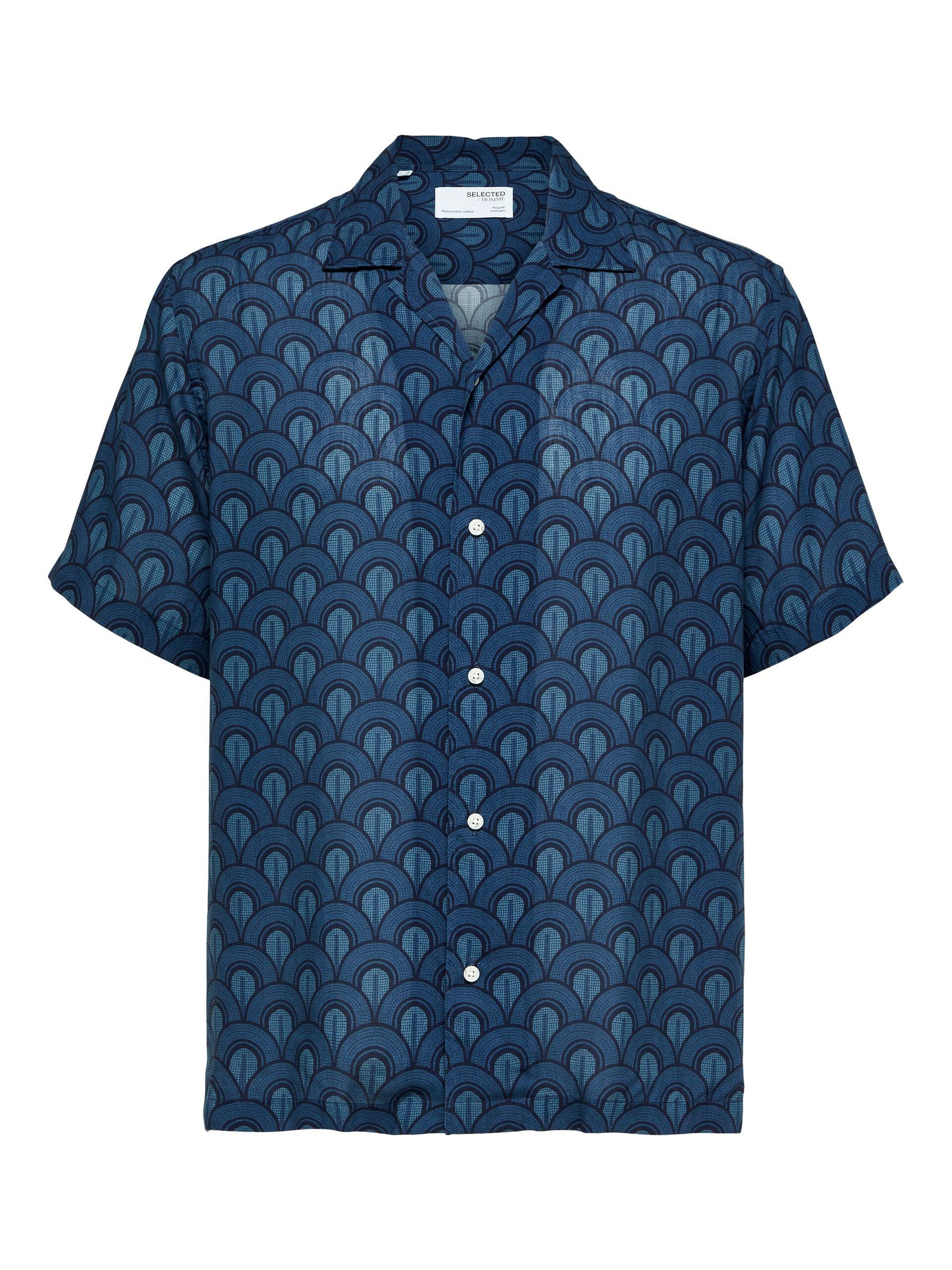 Men's all over printed resort shirt with short sleeves and cut in a regular fit. Has a classic shirt collar and front button placket. Made from premium quality fabric for utmost comfort. Style it with a pair of beige chino shorts and espadrilles for the perfect summer look.