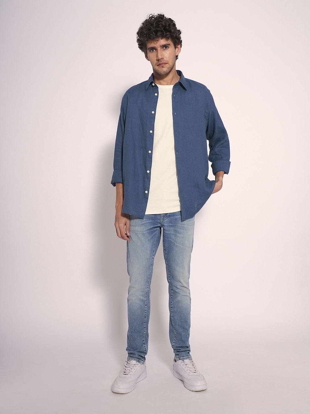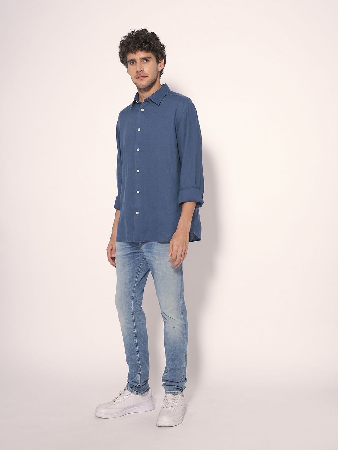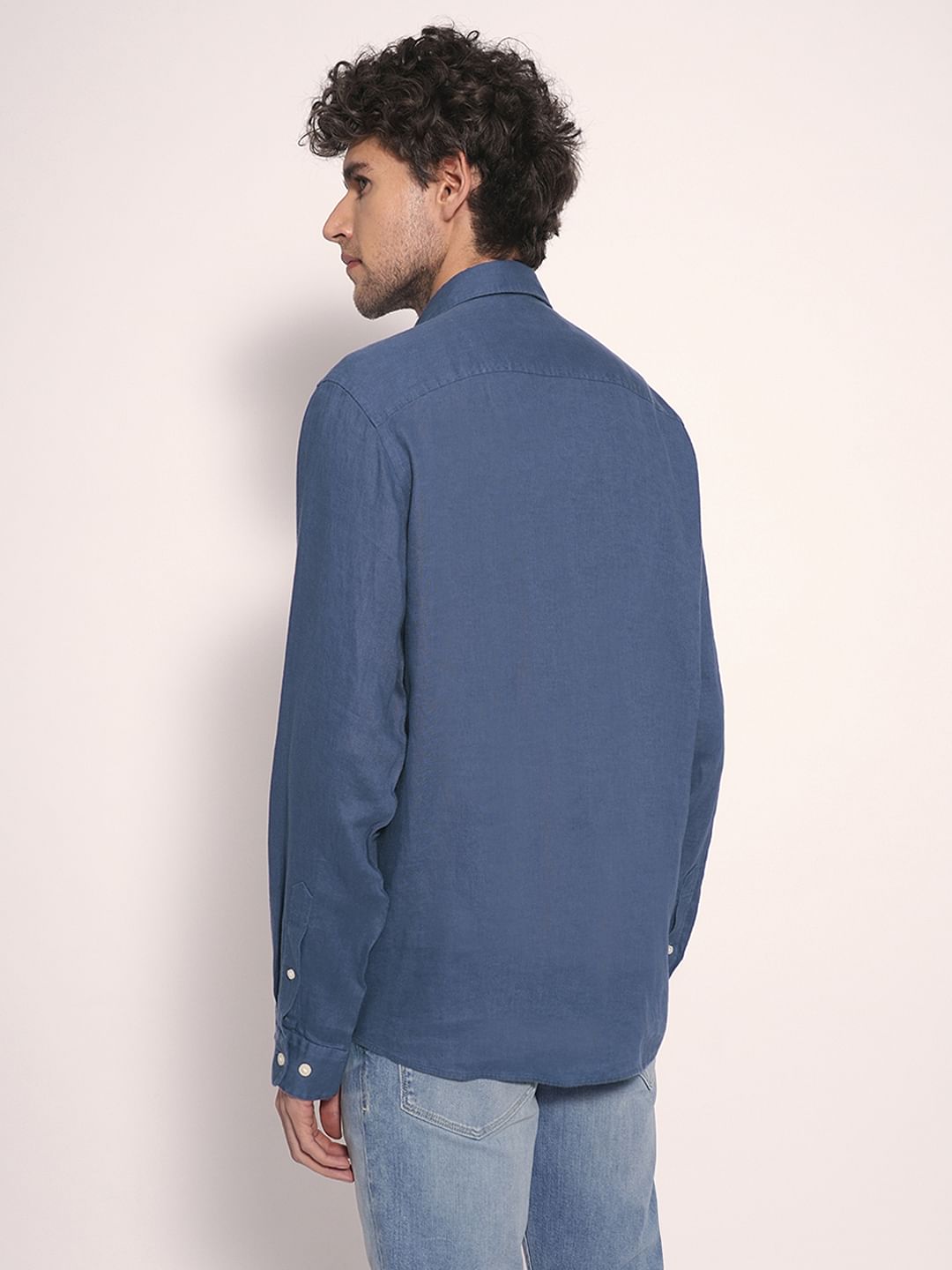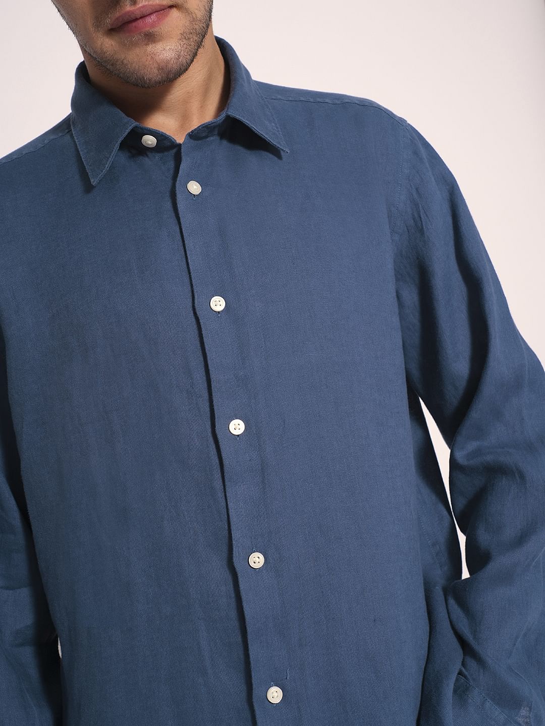 Blue Linen Full Sleeves Shirt