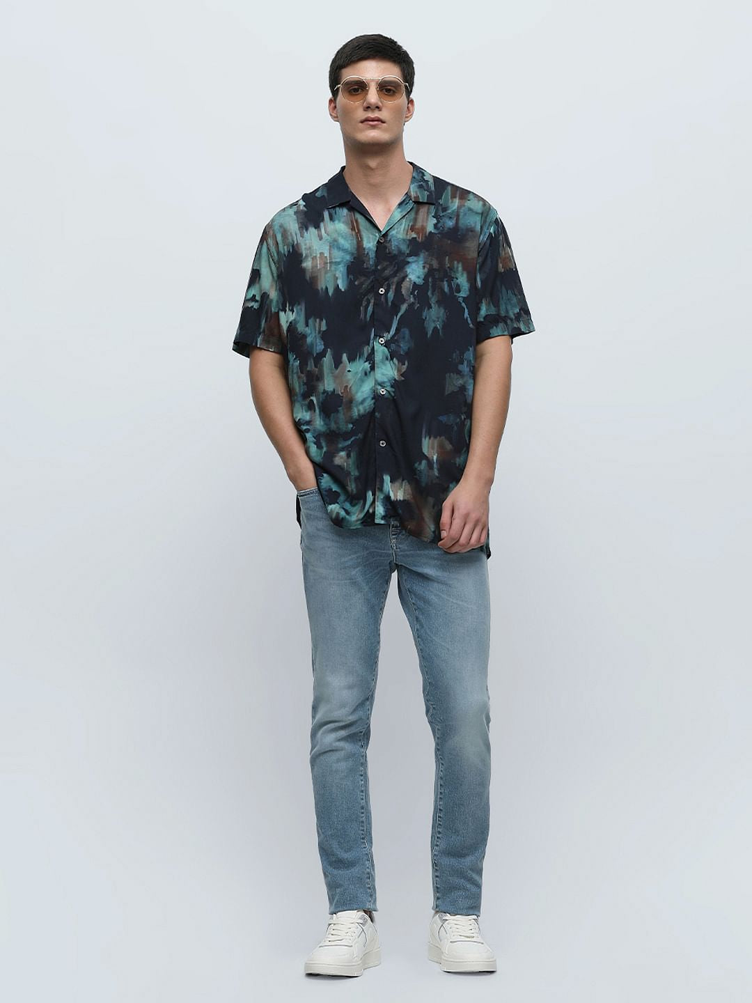 BLUE MID RISE LEON WASHED SLIM FIT JEANS