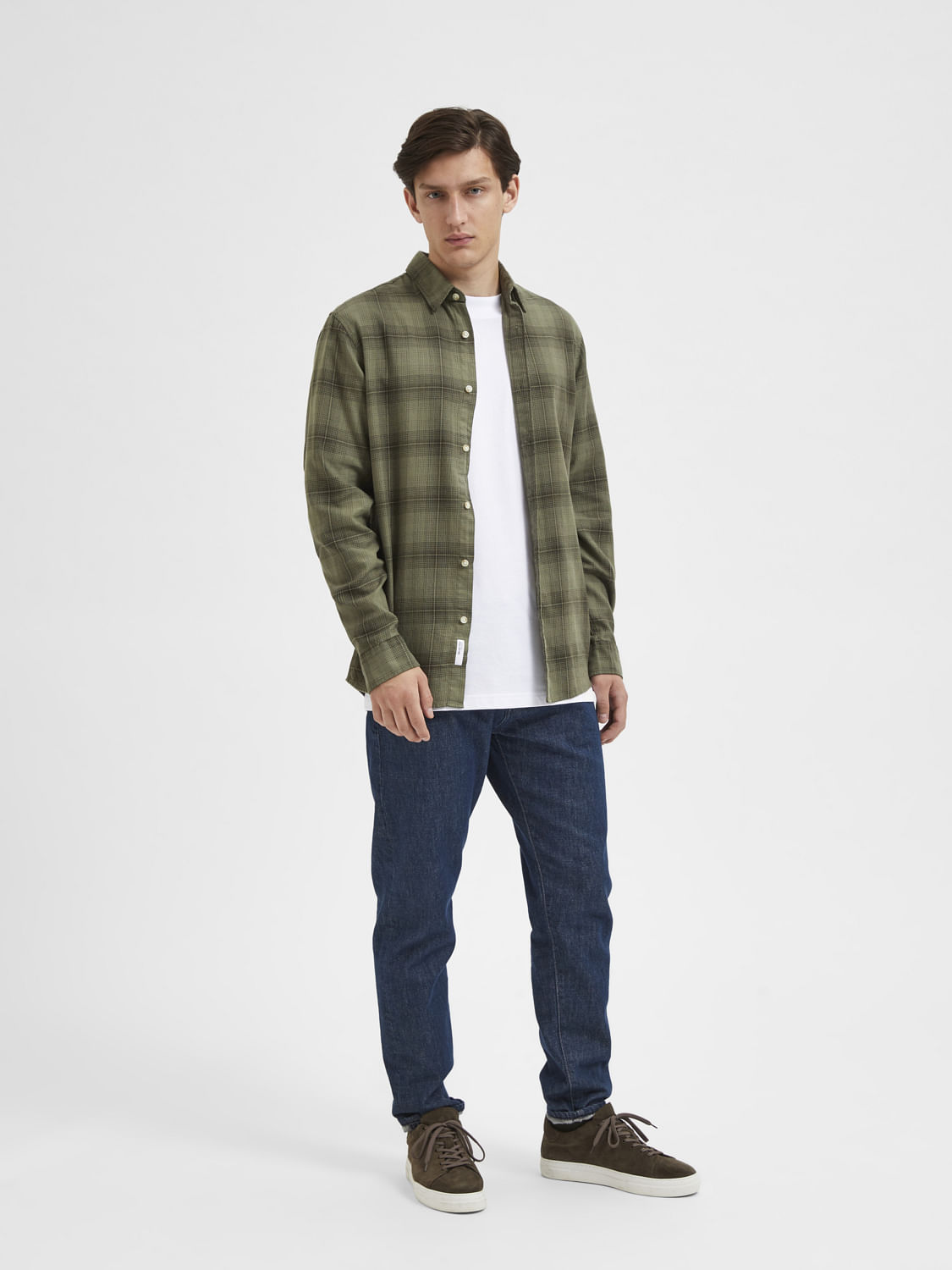 Premium organic cotton full sleeves shirt for men. Cut in a regular fit and rendered in a classic check print. Perfect for wearing with jeans, chinos or cargos. Complete your look with some sneakers and a jacket.