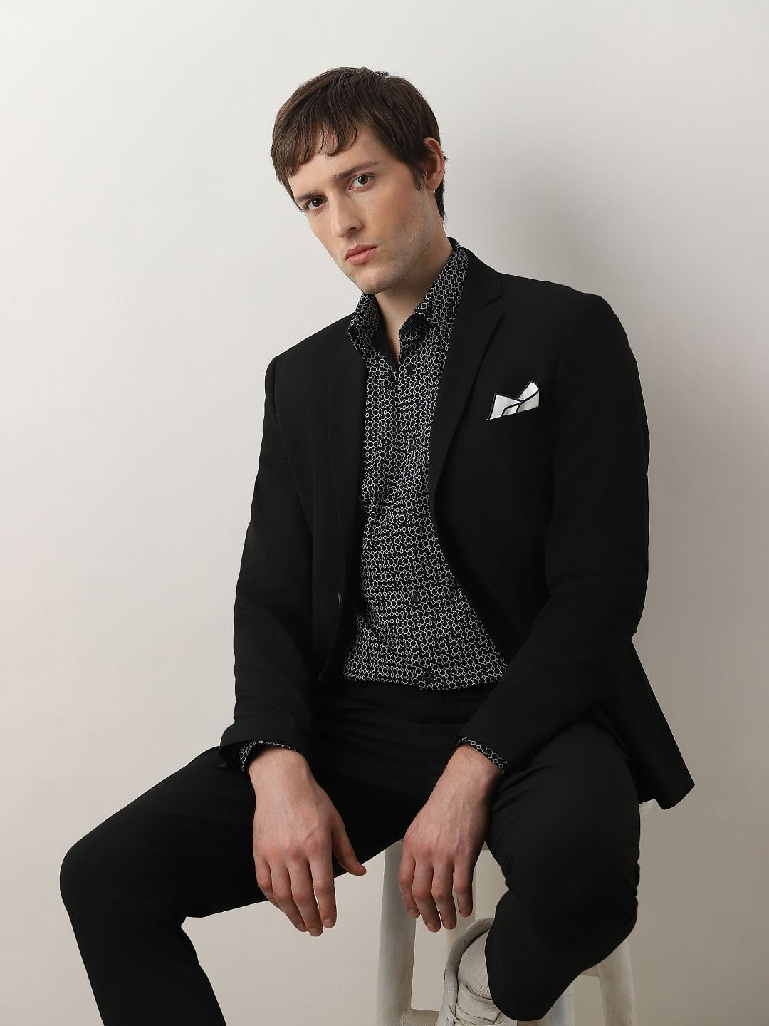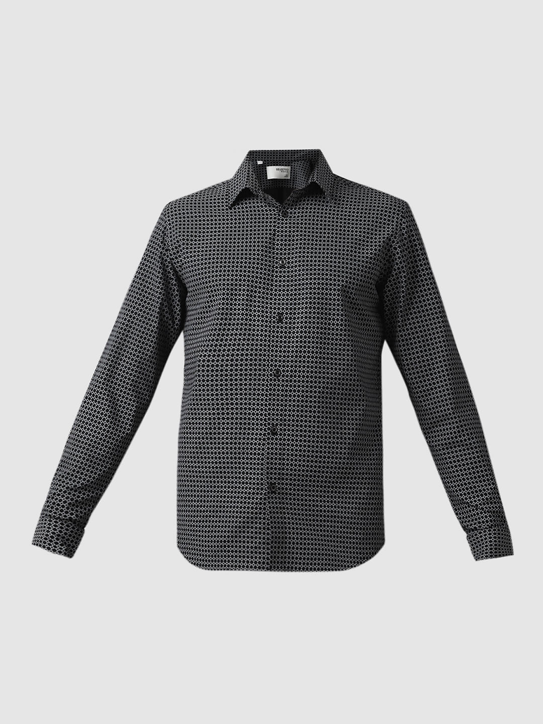 Men's 100% cotton dotted shirt cut in a slim fit and designed with a classic front button closure. Style with trousers or jeans for a smart ensemble.