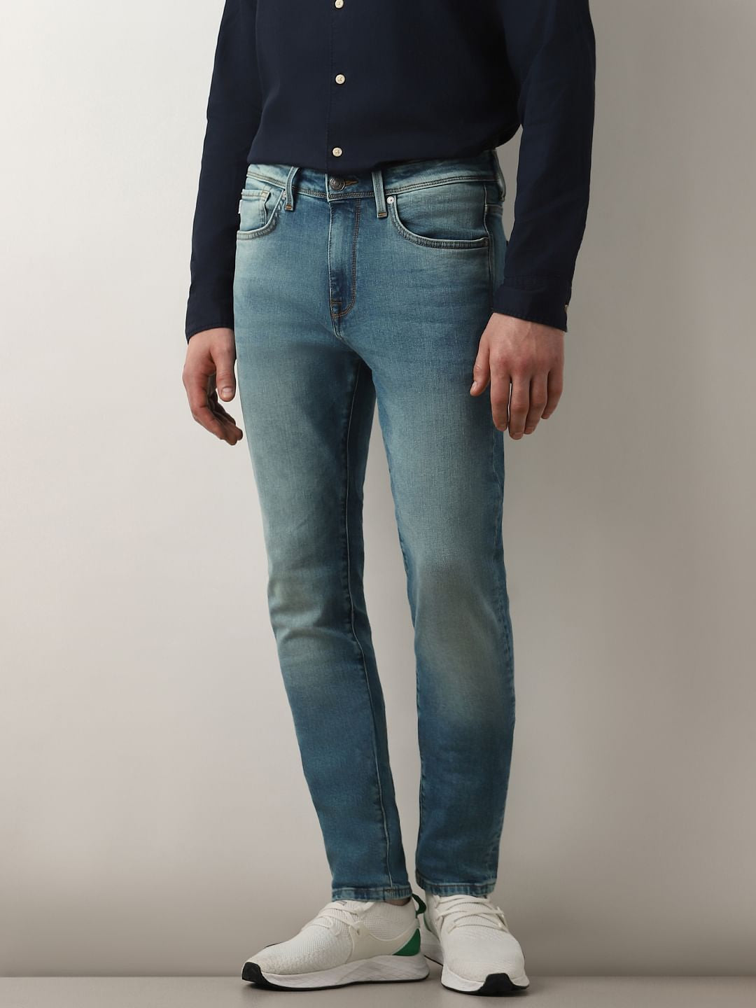 Classic blue jeans for men from SELECTED. Made from premium quality cotton blend fabric with stretch for the perfect fit. Features a washed worn-in look for added edge and is designed with belt loops, zip-button closure, and pockets. Offering a slim fit, these jeans are sure to become your go-to for all casual occasions. Style it with a tee and sneakers for a smart-casual ensemble.