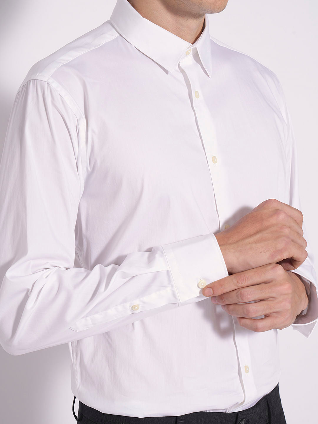 Elevate your wardrobe with this White Formal Cotton Shirt, where sophistication meets comfort. Crafted from premium cotton, this shirt offers a soft touch against the skin while ensuring breathability throughout the day. Its timeless white hue adds a subtle yet distinguished flair to your formal attire, making it a versatile choice for both business and special occasions. The tailored fit provides a sharp silhouette, allowing you to look effortlessly polished. Pair it with your favourite trousers or a sleek blazer for an ensemble that exudes confidence and elegance.