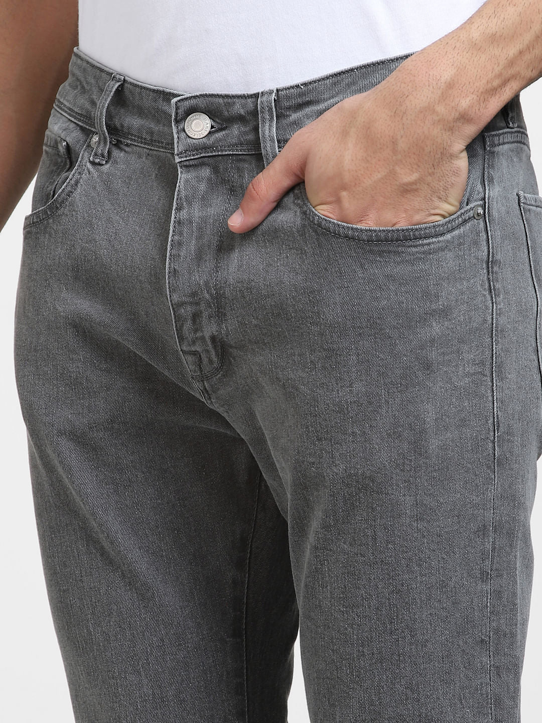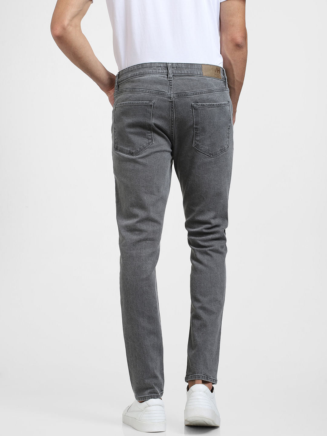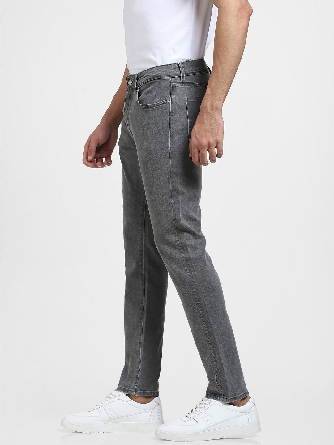 Grey Mid Rise Dyed Leon Slim Fit Jeans