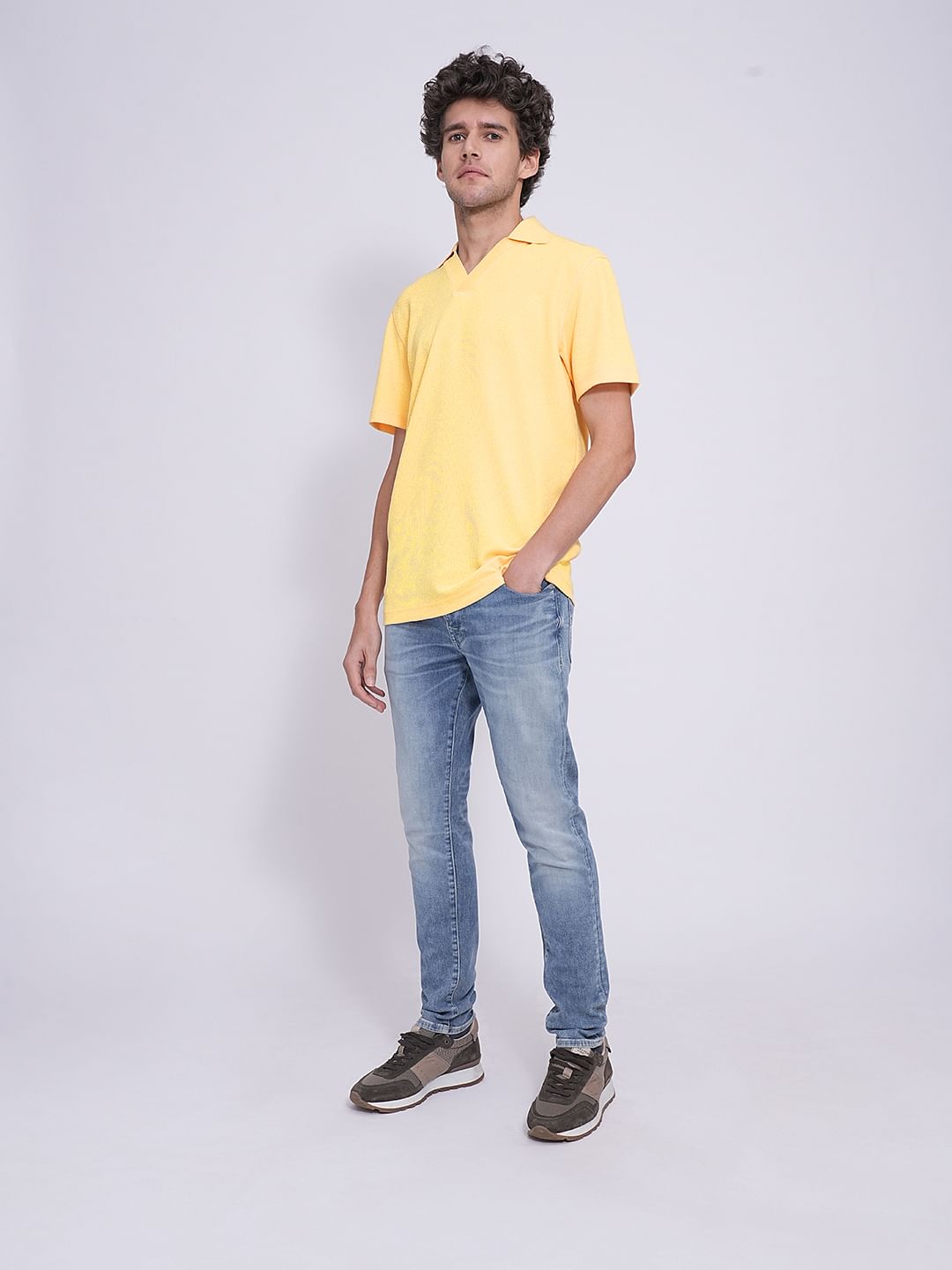 Yellow Split Neck Regular Fit Polo