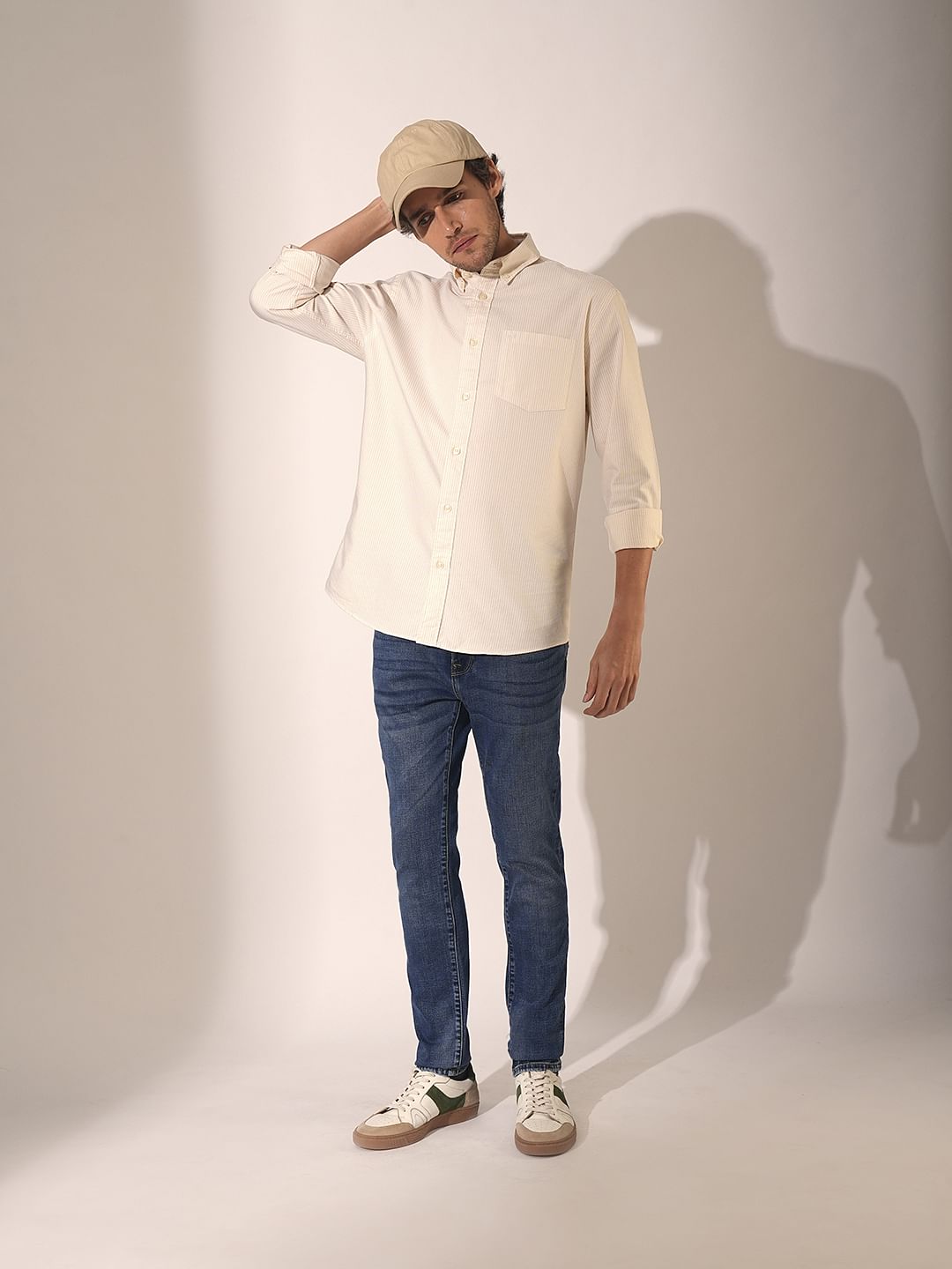 A button-down shirt isn’t reserved for formal events alone. This one comes with a patch pocket at the chest and placket cuffs that can be folded up for a more casual look. It’s made from soft and breathable cotton and comes in a regular fit, making it extra versatile. Style it unbuttoned over a t-shirt, or pair it with your best blazer.