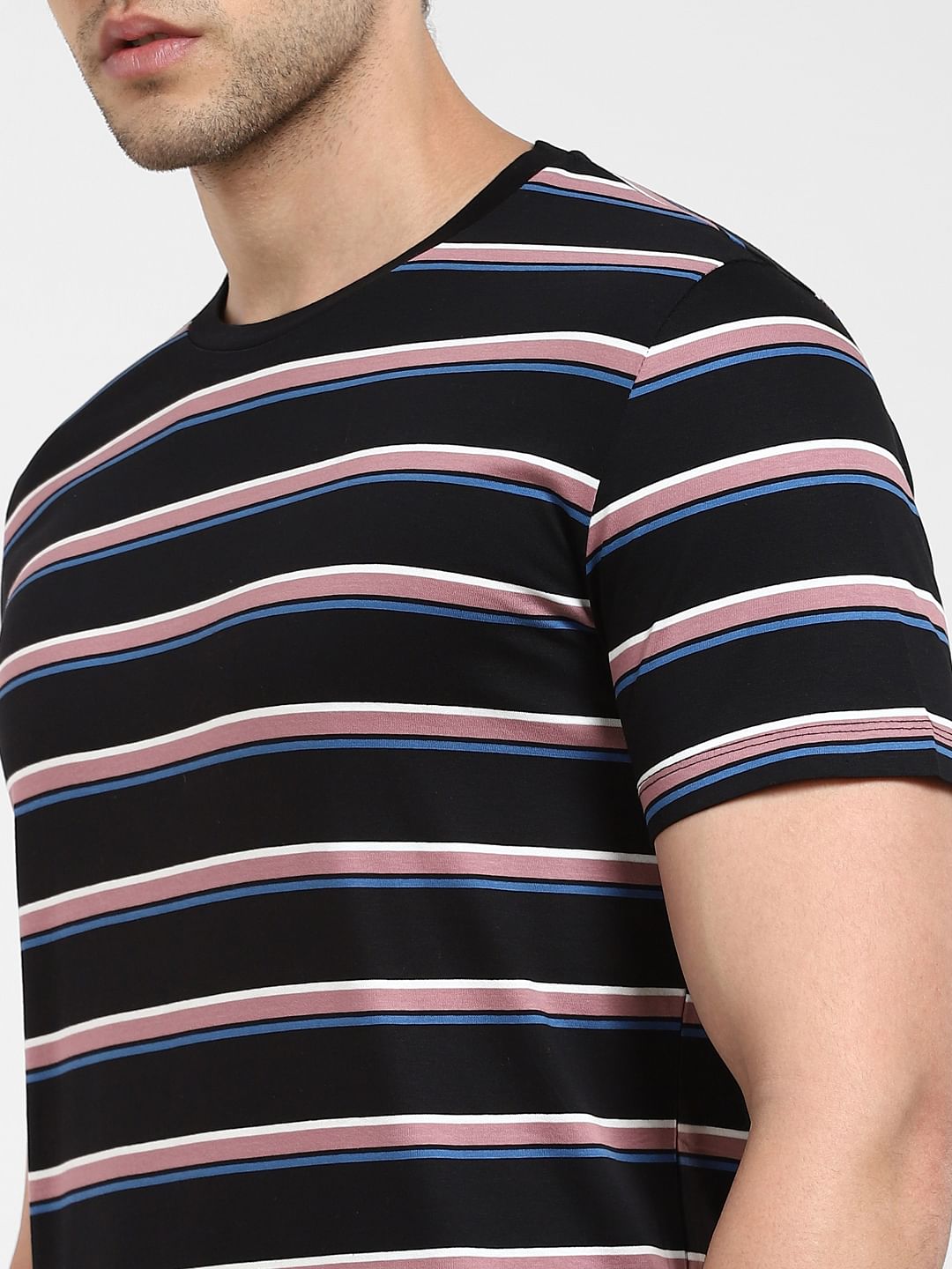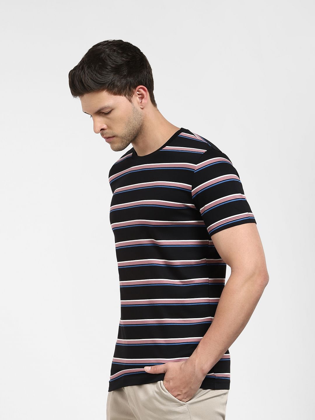 Men's crew neck t-shirt made from finest organic cotton fabric and cut in a slim fit. Features an all over merc striped pattern. Perfect to style with denims and sneakers for a smart-casual look.