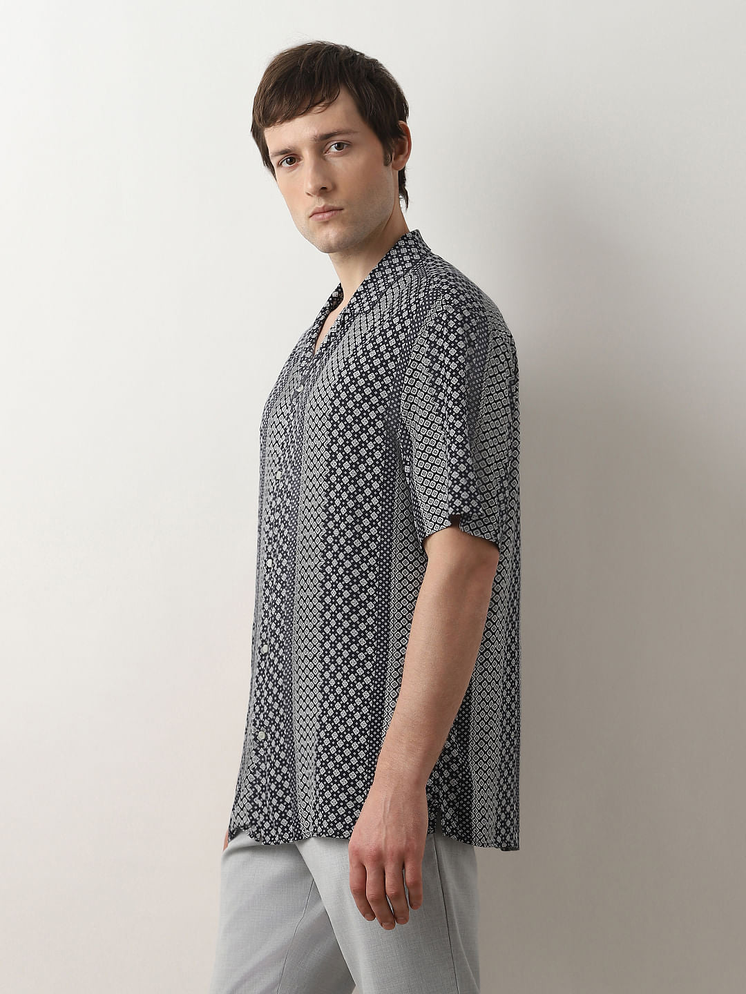 Elevate your summer wardrobe with our effortlessly stylish men's shirt, designed to bring a touch of laidback sophistication to your sunny days. Crafted with a classic shirt collar and short sleeves, this shirt exudes casual charm while maintaining a refined edge. The button fastening adds a polished finish to the ensemble, ensuring a seamless blend of comfort and style. Experience the pleasure of a soft and comfortable wear, thanks to a special treatment that enhances the fabric's feel. The straight hem and side slits contribute to a relaxed fit, allowing you to embrace the season with ease. A subtle yet distinctive touch lies in the all-over print, creating a harmonious pattern that extends across the entire surface of the shirt. Whether you're strolling along the beach or attending a casual outdoor gathering, this shirt is your go-to choice for a timeless, summer-inspired look.
