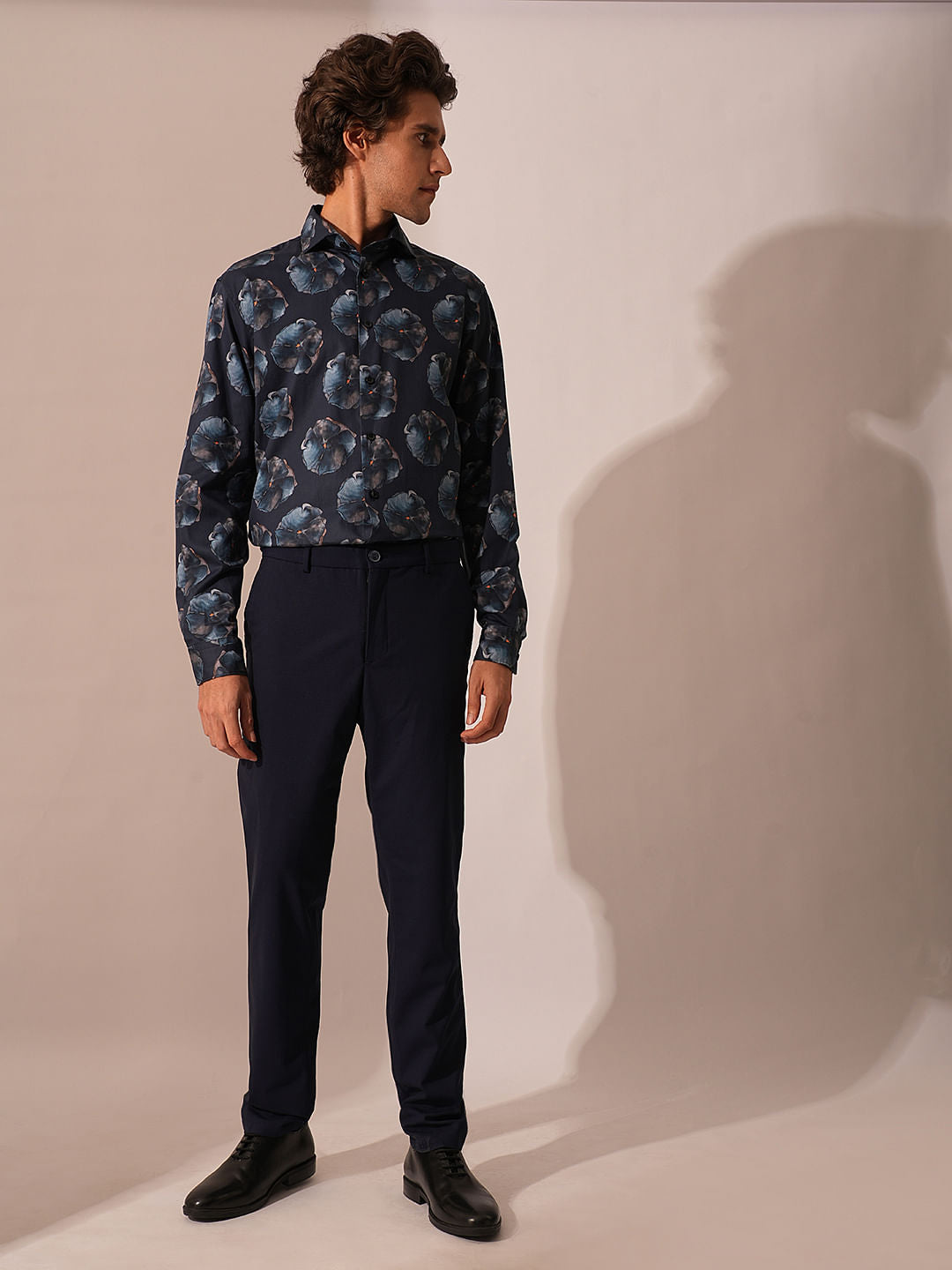 Elevate his wardrobe with this Blue Floral Print Cotton Shirt, crafted from soft, breathable cotton. Featuring a subtle floral design, this shirt blends classic style with a playful twist. Perfect for any occasion, it offers a comfortable fit and a refined look, ideal for dressing up or down.