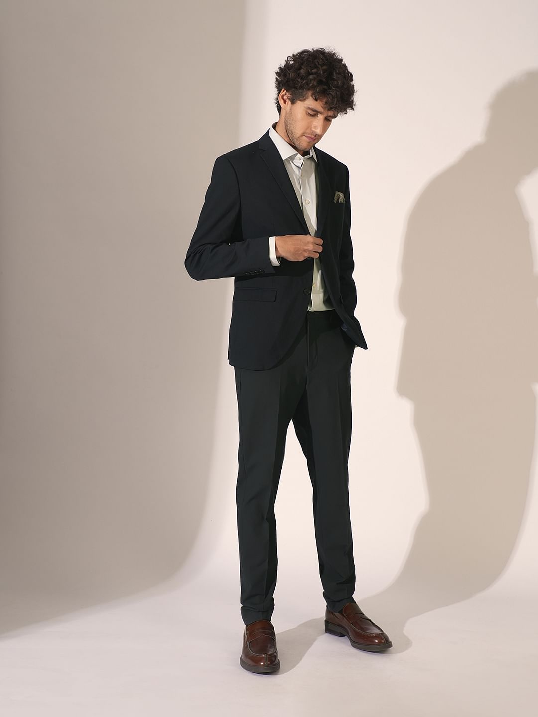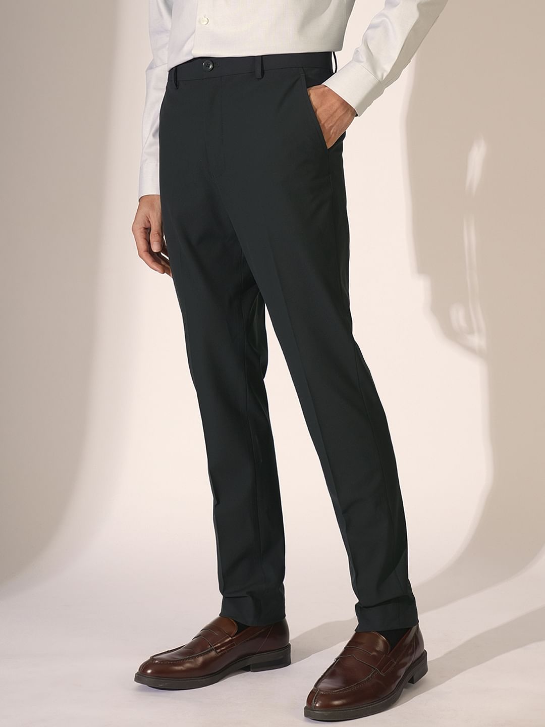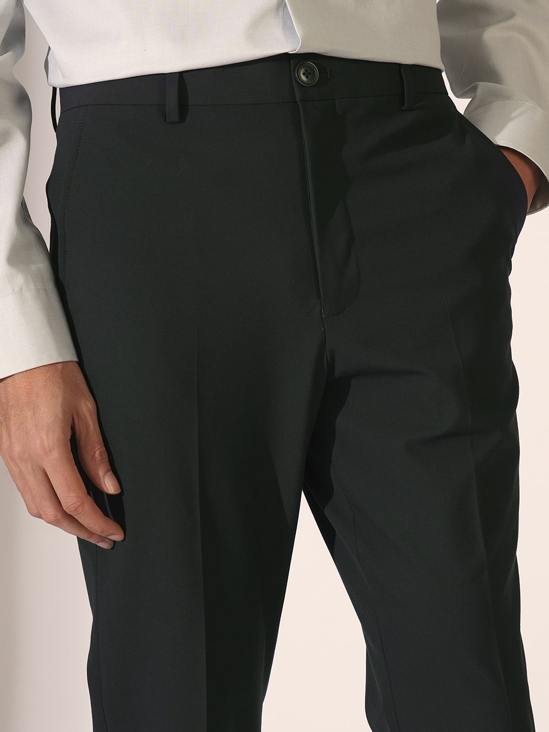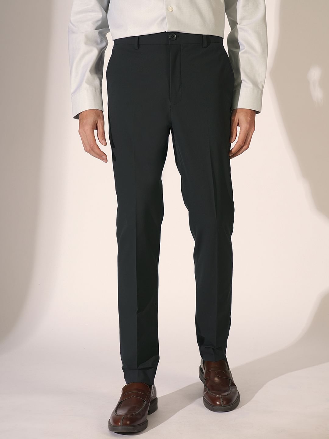 Elevate your wardrobe with these refined slim-fit trousers, crafted for a polished and modern look. Featuring a mid-rise waist with a zip-up fly and button fastening, they are designed for both style and ease of wear. Thoughtfully detailed with belt loops and side pockets, these trousers offer functionality without compromising on elegance. The front pleats add a touch of sophistication, while the cotton lining ensures all-day comfort.