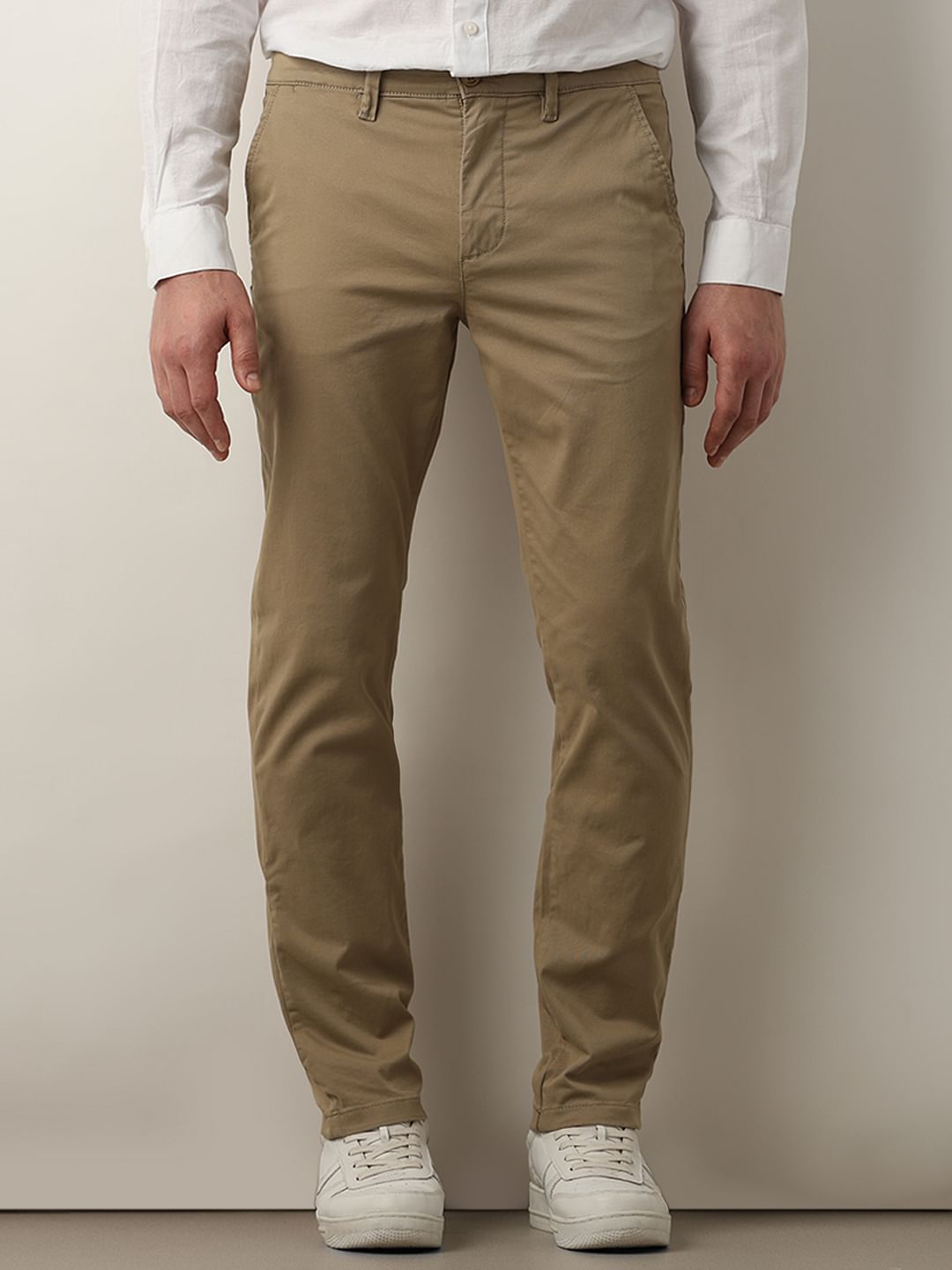 Introducing our Beige Mid Rise Chino Pants, a timeless essential for the modern gentleman. Crafted with meticulous attention to detail, these slim fit pants boast a sophisticated solid print, elevating your everyday style effortlessly. Designed with both comfort and style in mind, they feature a convenient button-zip closure, classic belt loops, and practical pockets for added functionality. Whether for casual outings or more formal occasions, these chinos are sure to become a versatile staple in your wardrobe, offering understated elegance with every wear.