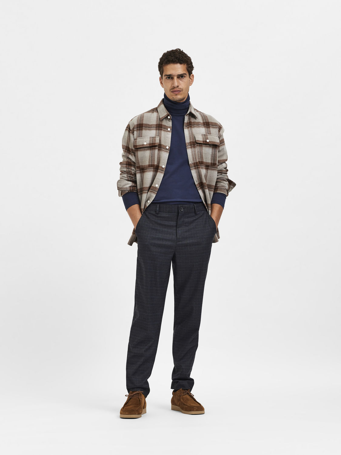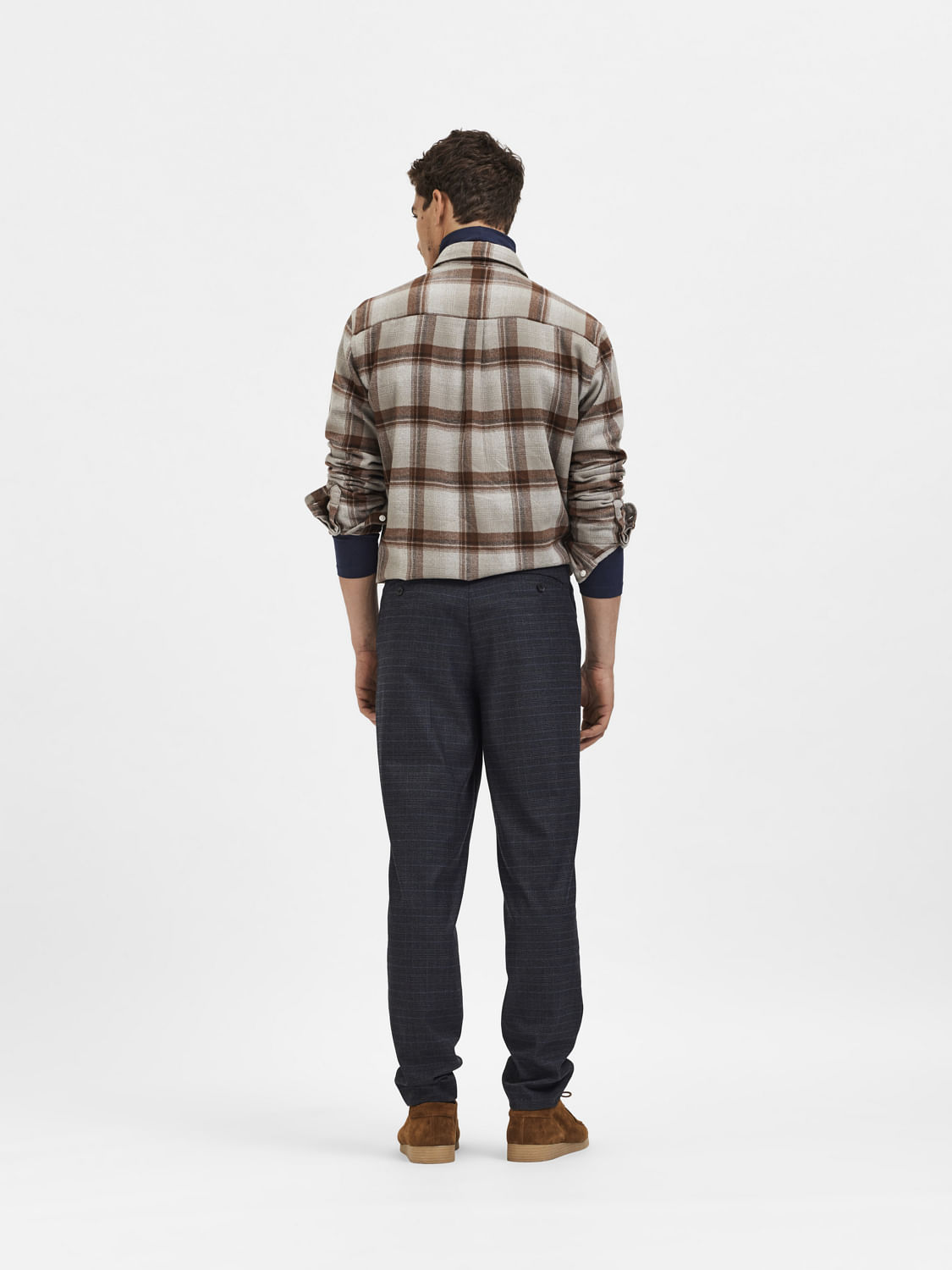 Tailored to perfection; this pair of slim fit check print trousers is a wardrobe must-have. With a mid-rise waist, belt loops and pockets, there's nothing to not like about this classic. It is made from recycled fabric. Pair it with a shirt and jacket for a smart-casual look with a formal edge.