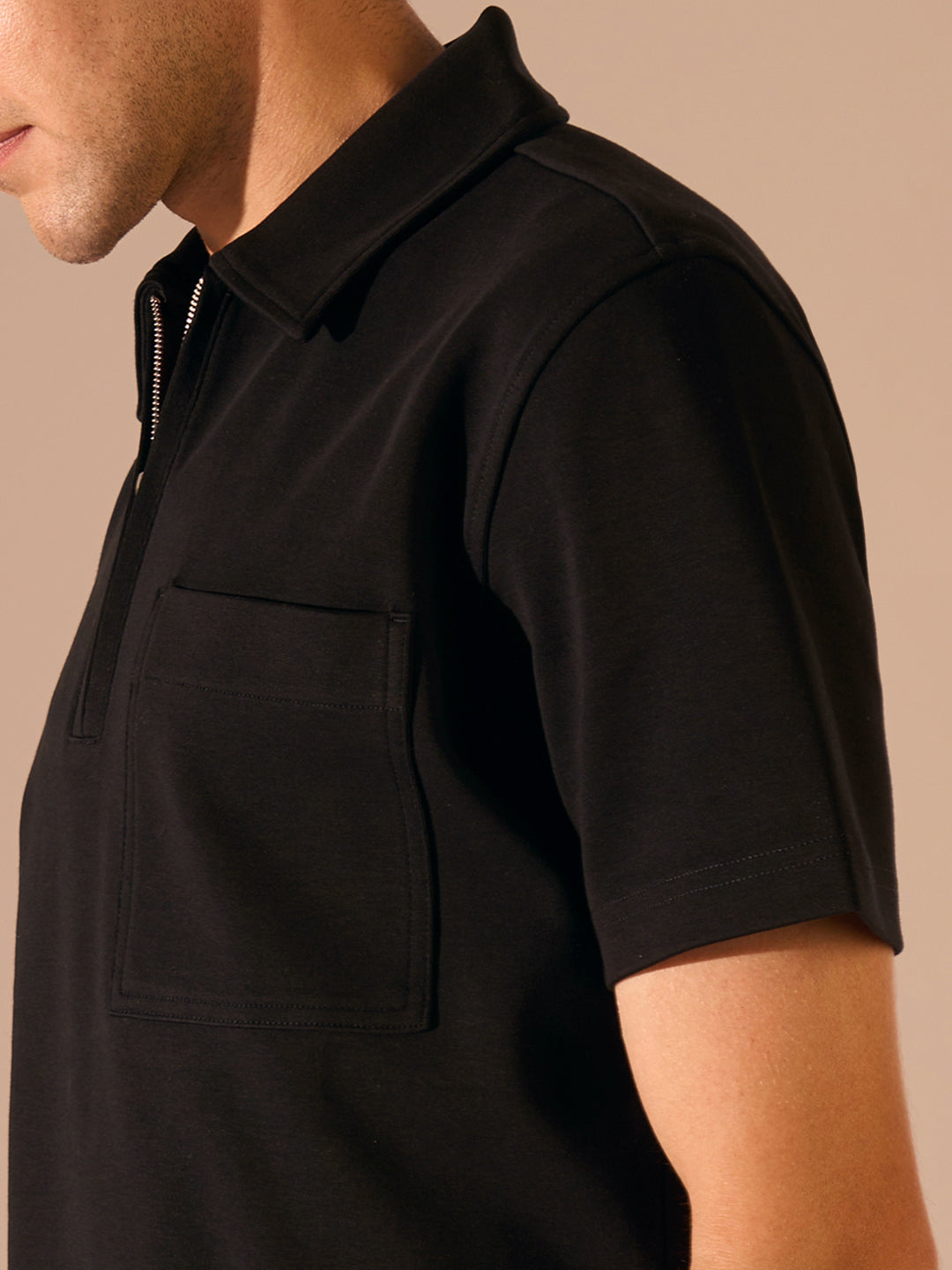 Black Cuban Collar Cotton Shirt