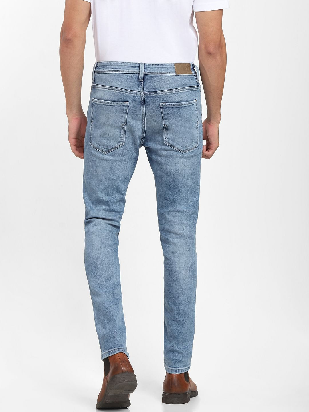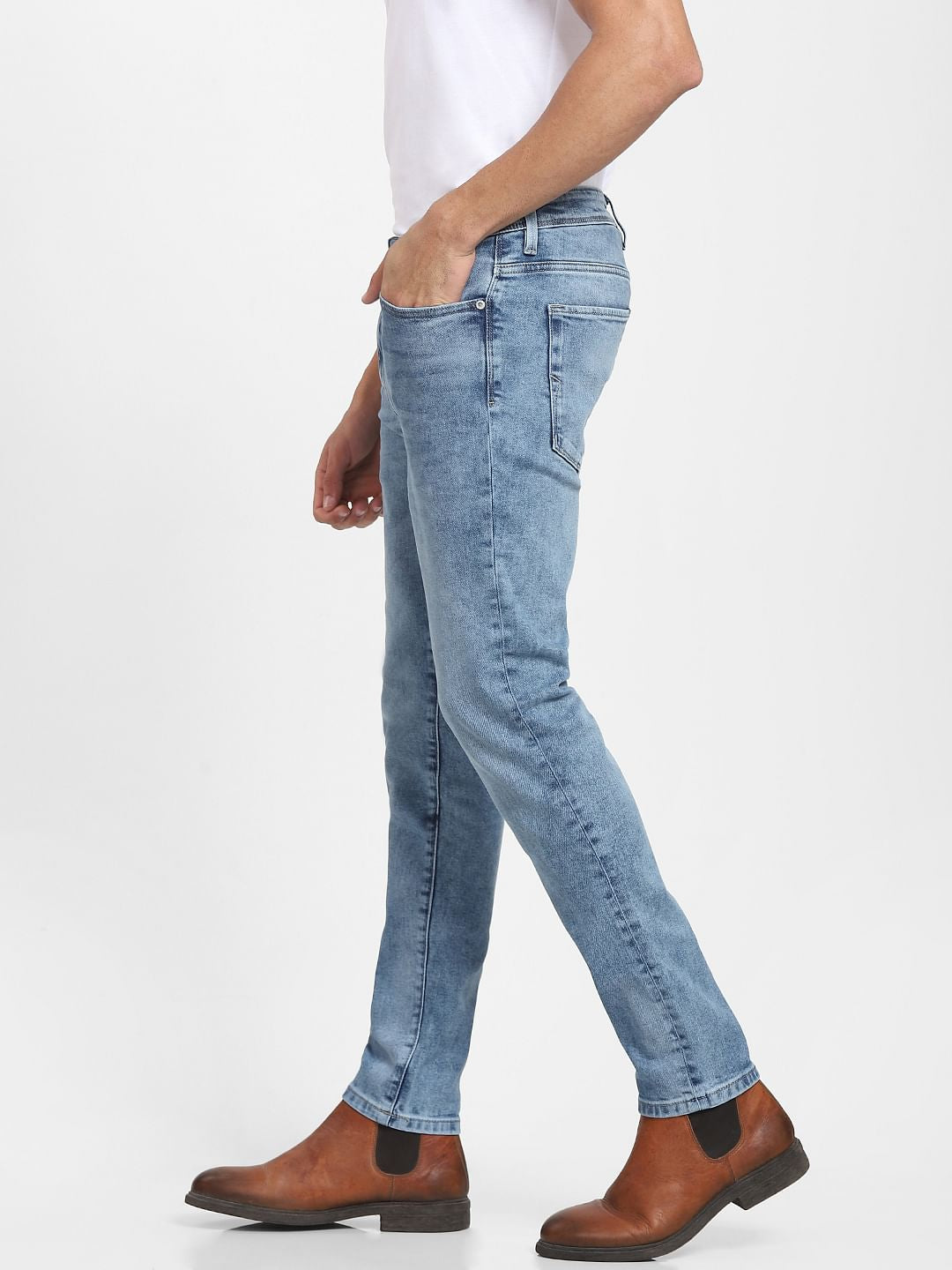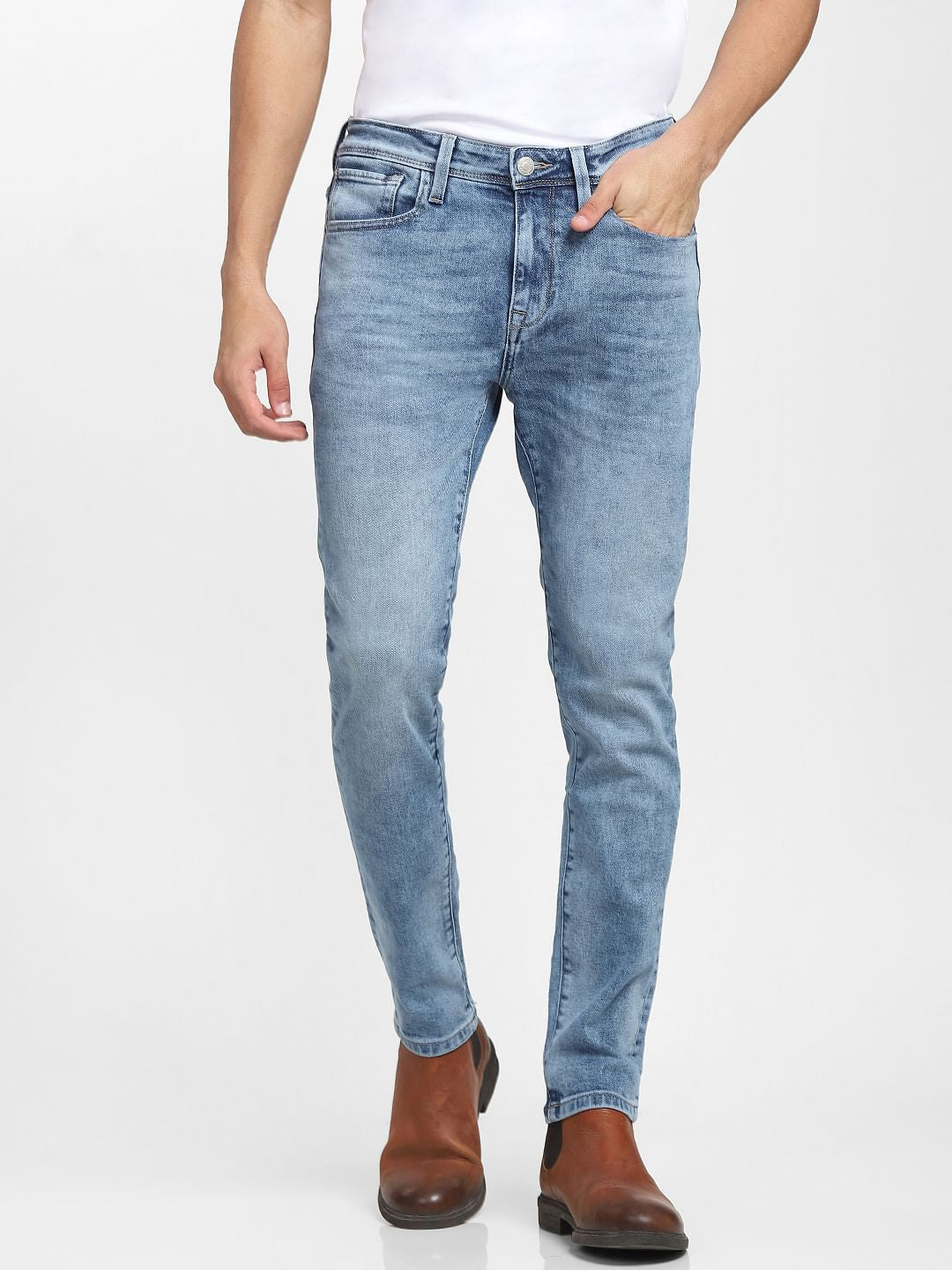 Men's Light blue slim-fit Jeans crafted with premium quality cotton giving them a soft, comfortable and premium feel. Style it with a white cardigan or pullover and you're good to go.