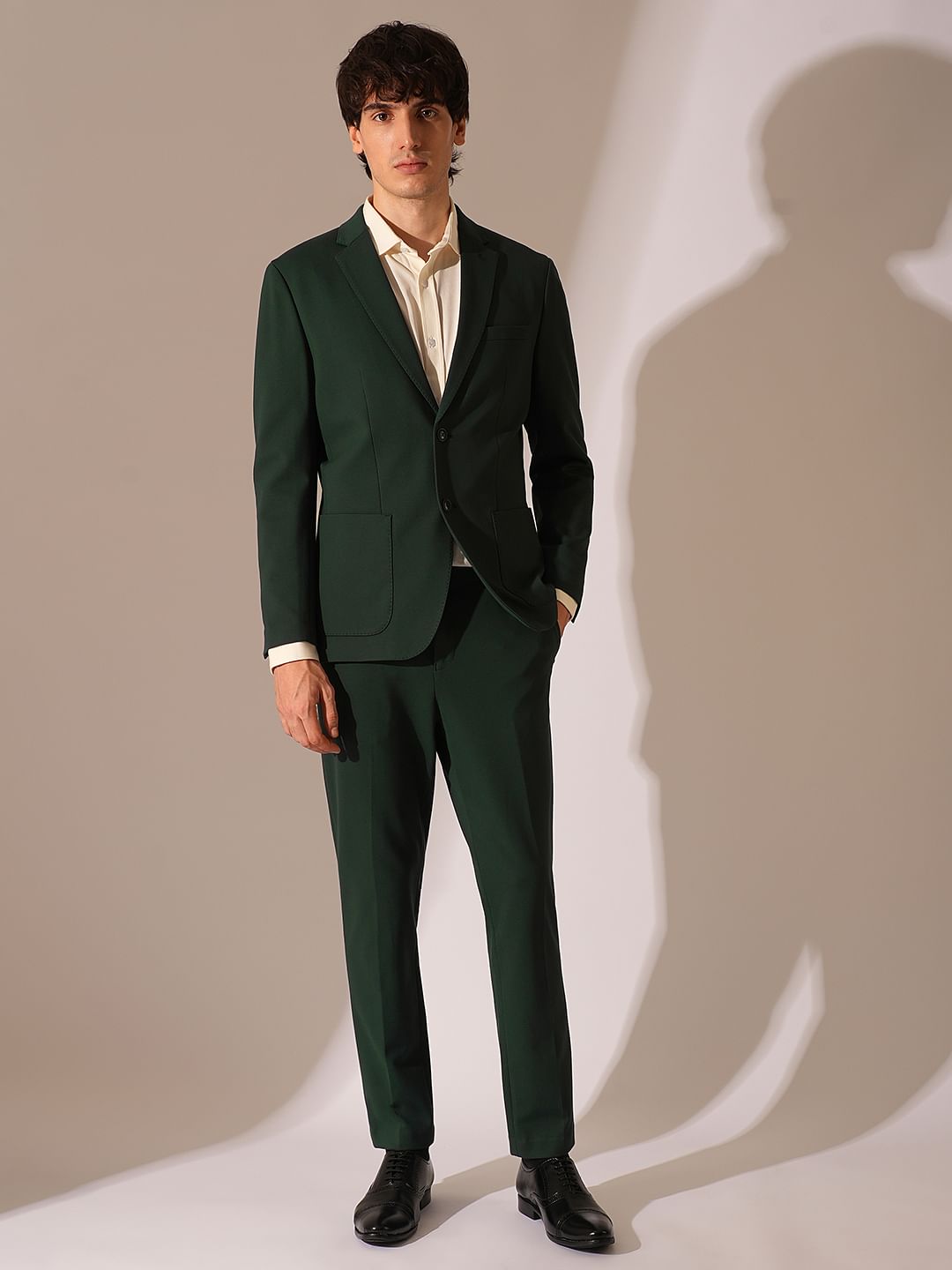 Suit up in our new jersey single-breasted slim fit tailored blazer. It’s crafted from jersey fabric, meaning it’s extra lightweight, but still features timeless tailoring details like the welted pocket and notched lapel. It’s also fully lined, making it ultra-comfortable to wear all day. Wear it as a two-piece with our matching trousers and layer a printed shirt underneath. Complete your look with leather penny loafers.