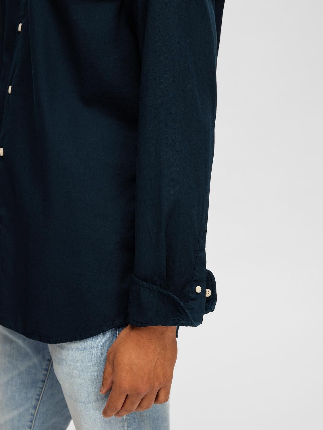Introducing our timeless and comfortable everyday essential. Crafted with meticulous attention to detail from organic cotton blend fabric and has been garment dyed for a soft and worn-in look. Additionally, this shirt features a classic shirt collar and long sleeves with buttoned cuffs, providing a polished and refined look. The button fastening ensures ease of wear, while the regular fit and curved hem offer a comfortable and versatile silhouette. Unlined for a lightweight feel, this shirt is treated for a soft touch, guaranteeing a luxurious and comfortable wear. Elevate your wardrobe with this effortlessly stylish and enduring piece.