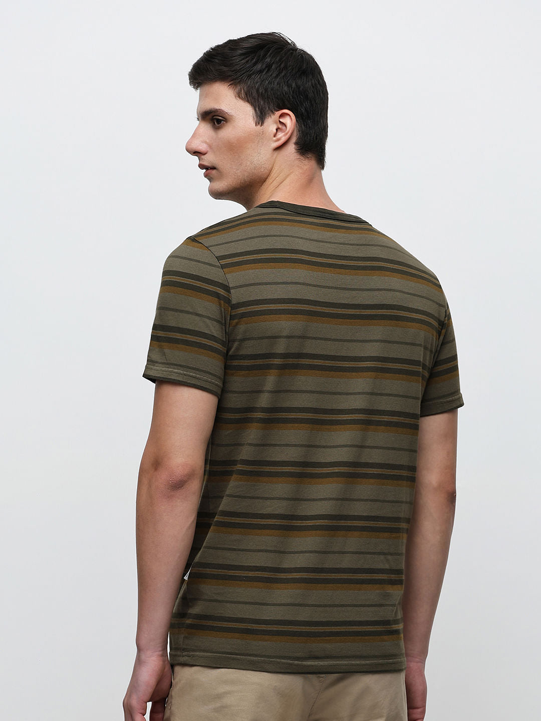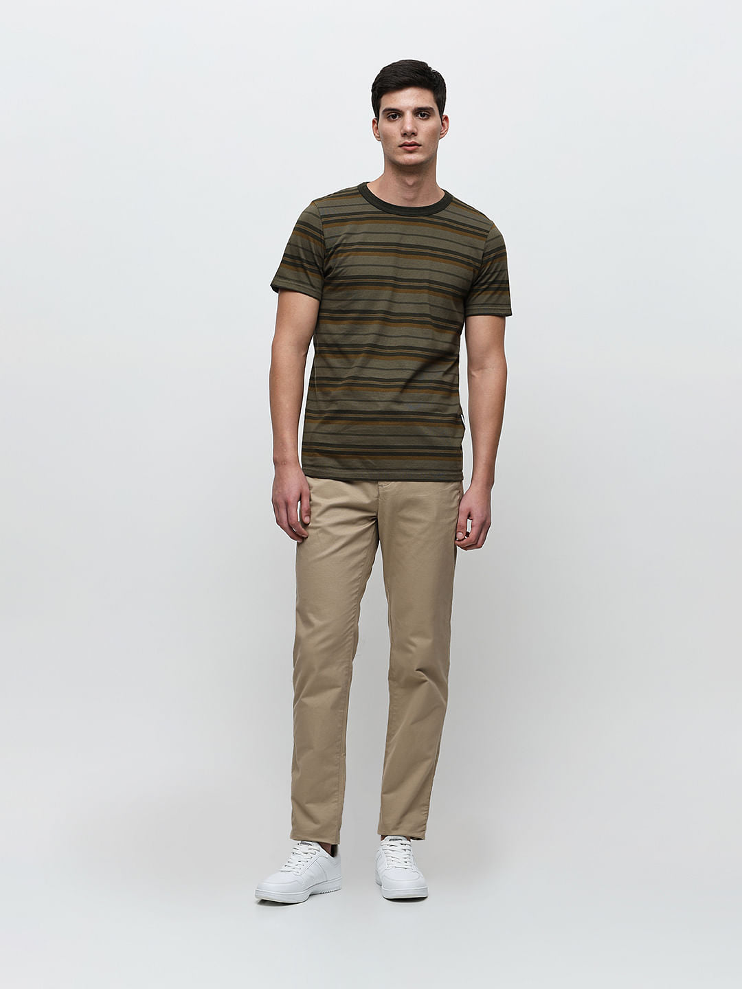 Men's knitted short sleeve striped tee designed with fold-up sleeves and cut in a slim fit. Made from premium quality organic cotton fabric. Style it with jeans and sneakers for a smart-casual look.