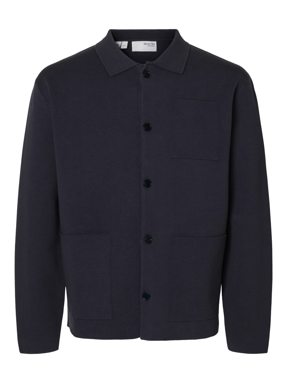 A modern take on everyday style. This knit polo cardigan features a flat collar, button-up front, and handy patch pockets. Designed in a relaxed fit, it’s perfect for layering over a tee with slim-fit jeans.