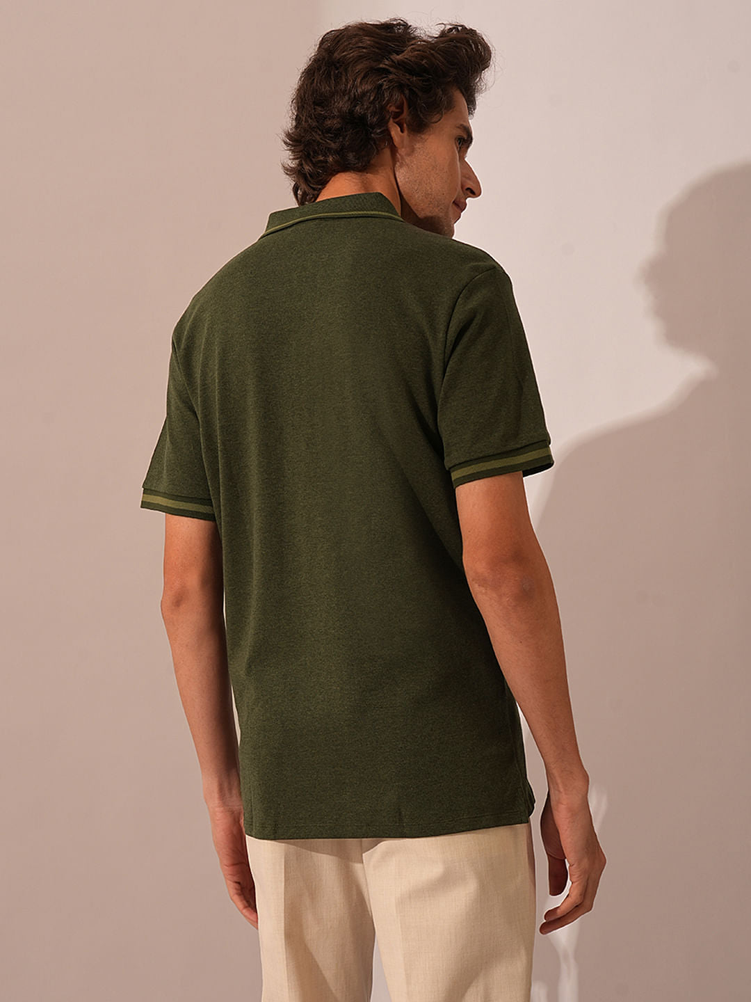 Meet our take on the modern Polo. It comes in a slim fit with contrast striped detailing at the collar and cuffs and has a zipped detail for a modern look. Made with recycled cotton, it comes in timeless colours that complement your existing wardrobe. Wear with chinos and some loafers.