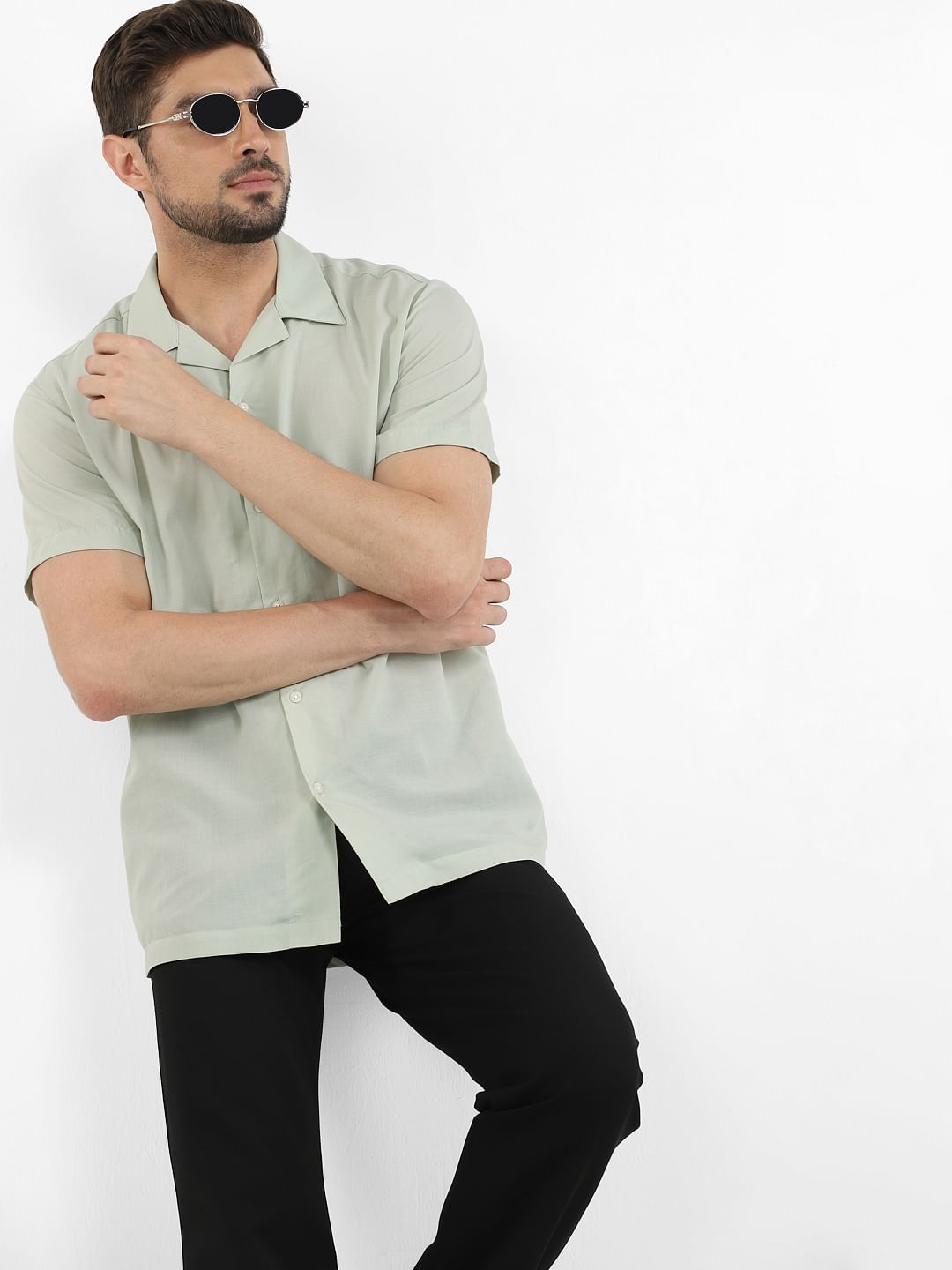 Men's organic cotton blend short sleeves shirt cut in a regular fit. Style it with denim shorts or jeans and sneakers for a look that is smart and casual.