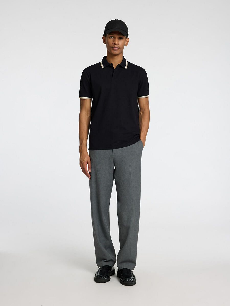 Add a sporty twist to your look with this classic cotton polo shirt. It features a subtle embroidered logo at the chest as well as athletic stripes at the collar and cuffs. Wear it with slim-fit chinos and a nylon bomber jacket.