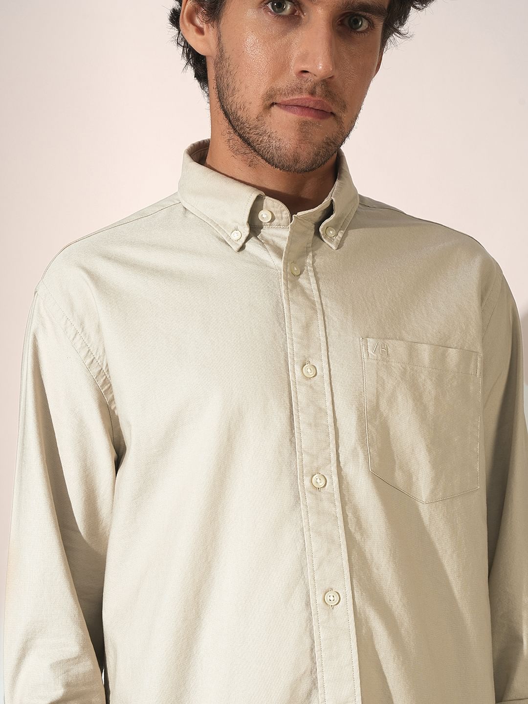 Beige Cotton Oxford Shirt