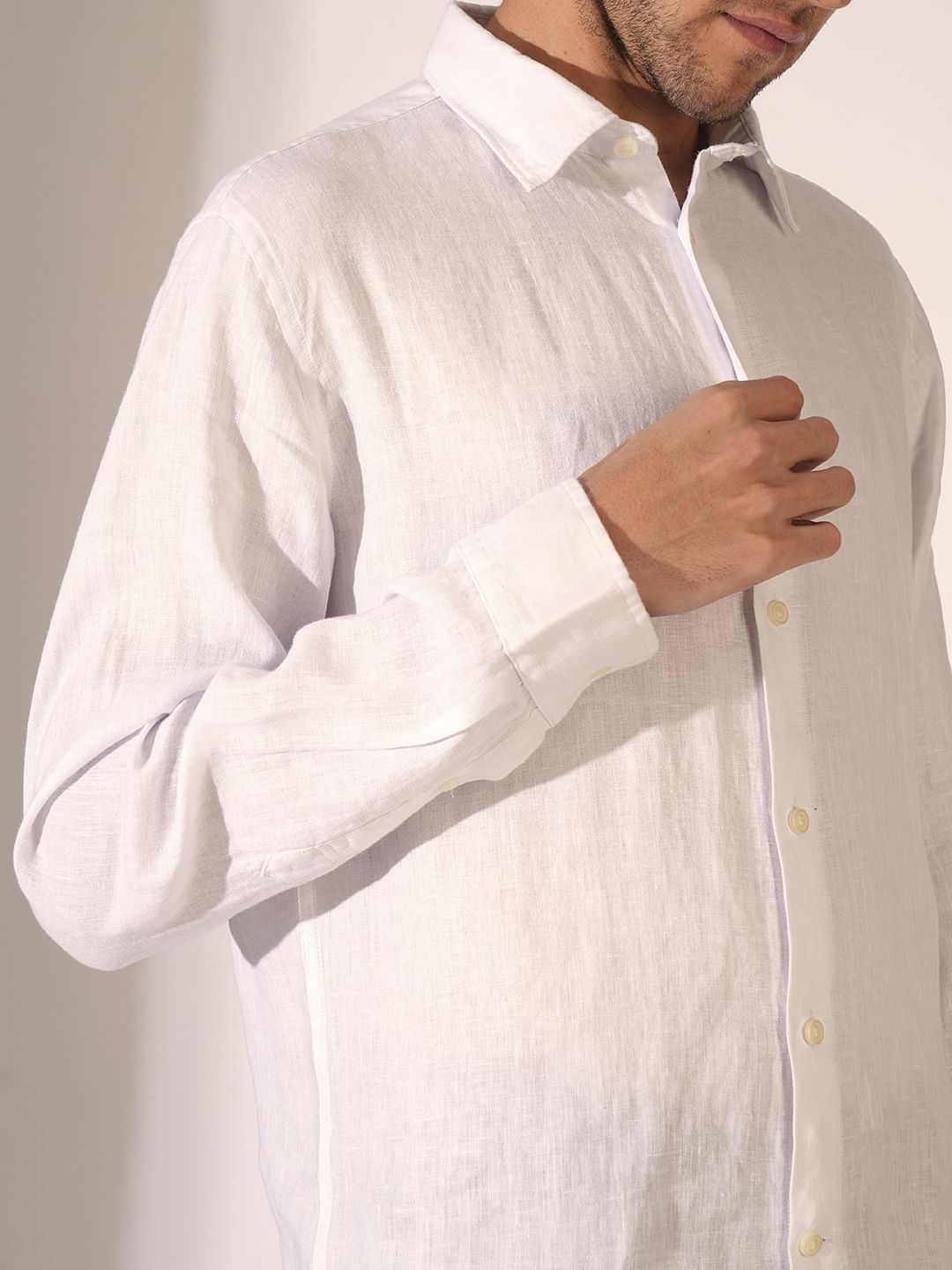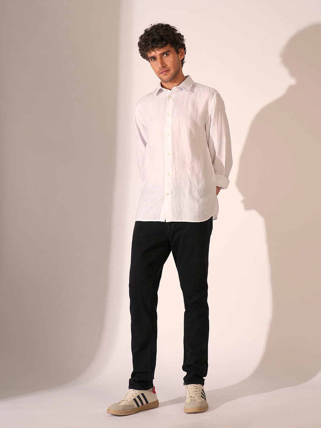 Elevate your everyday wardrobe with this timeless and versatile 100% linen shirt, crafted for style and comfort. Featuring a classic shirt collar and long sleeves with buttoned cuffs, this piece embodies understated sophistication. The button fastening ensures ease of wear, while the regular fit and curved hem offer a polished yet relaxed silhouette. Unlined for lightweight comfort, this shirt is an essential addition to any refined wardrobe.