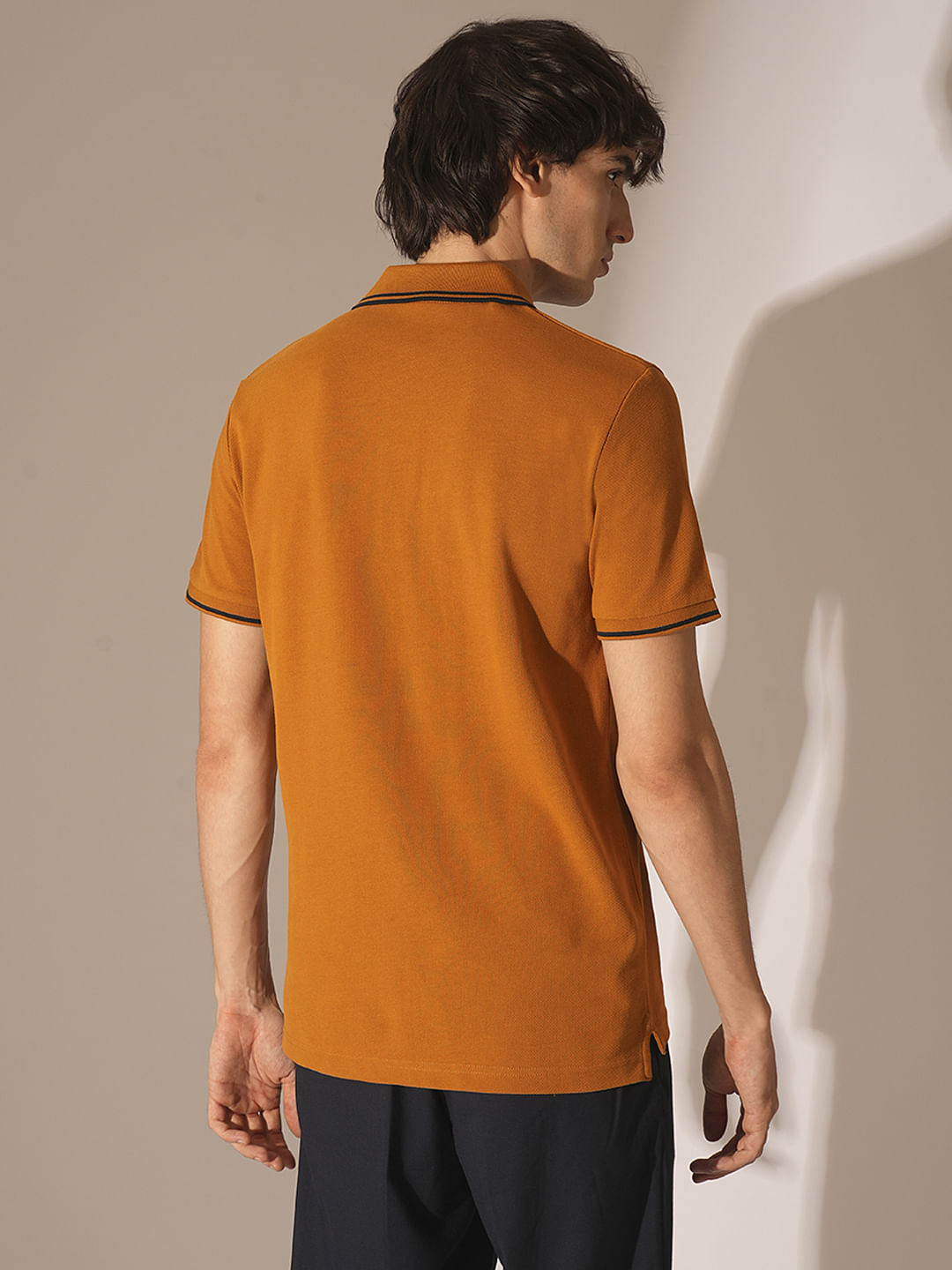Men's organic cotton polo from SELECTED. Features contrast tipping detail and subtle logo embroidered print on the front.