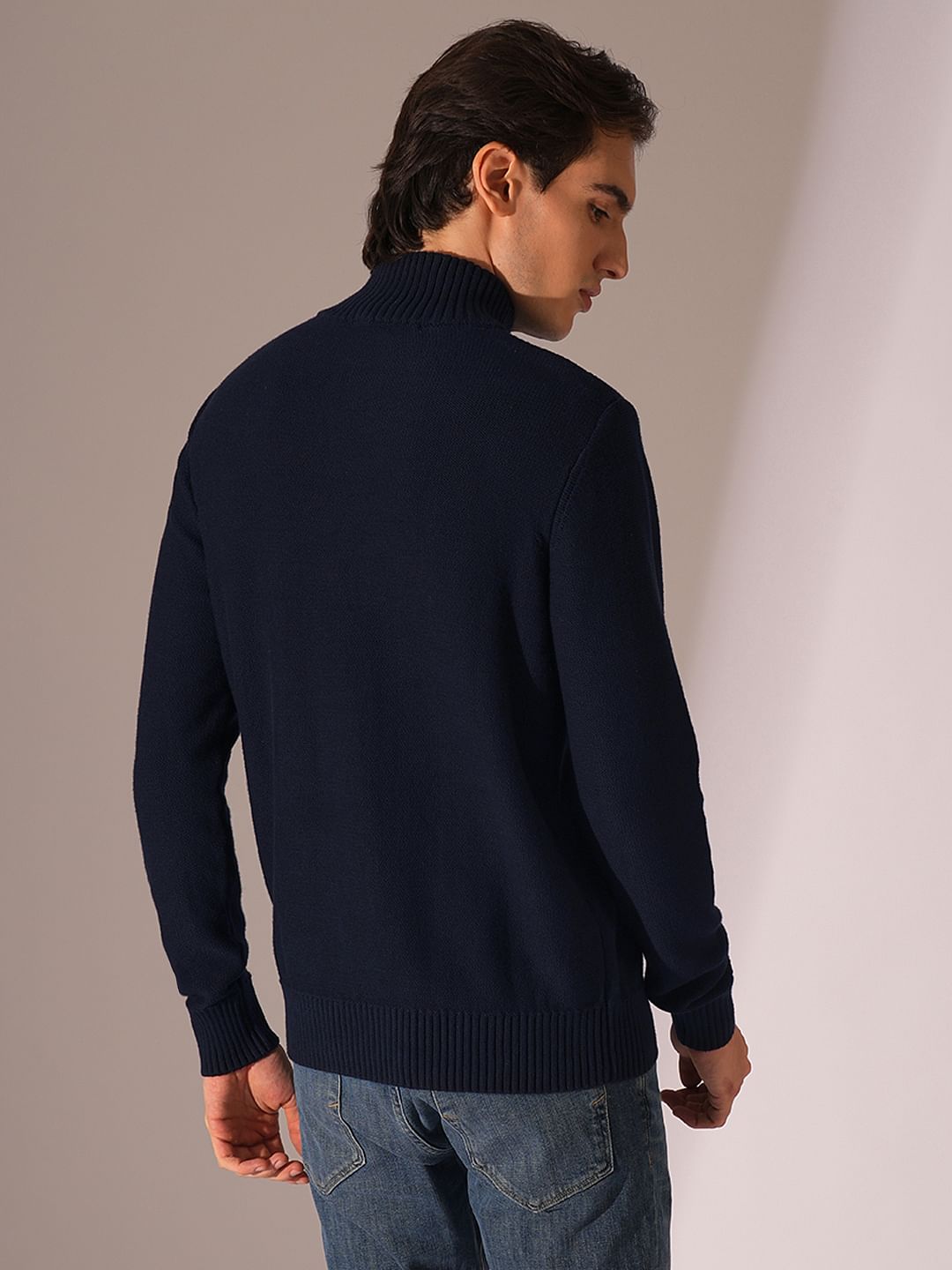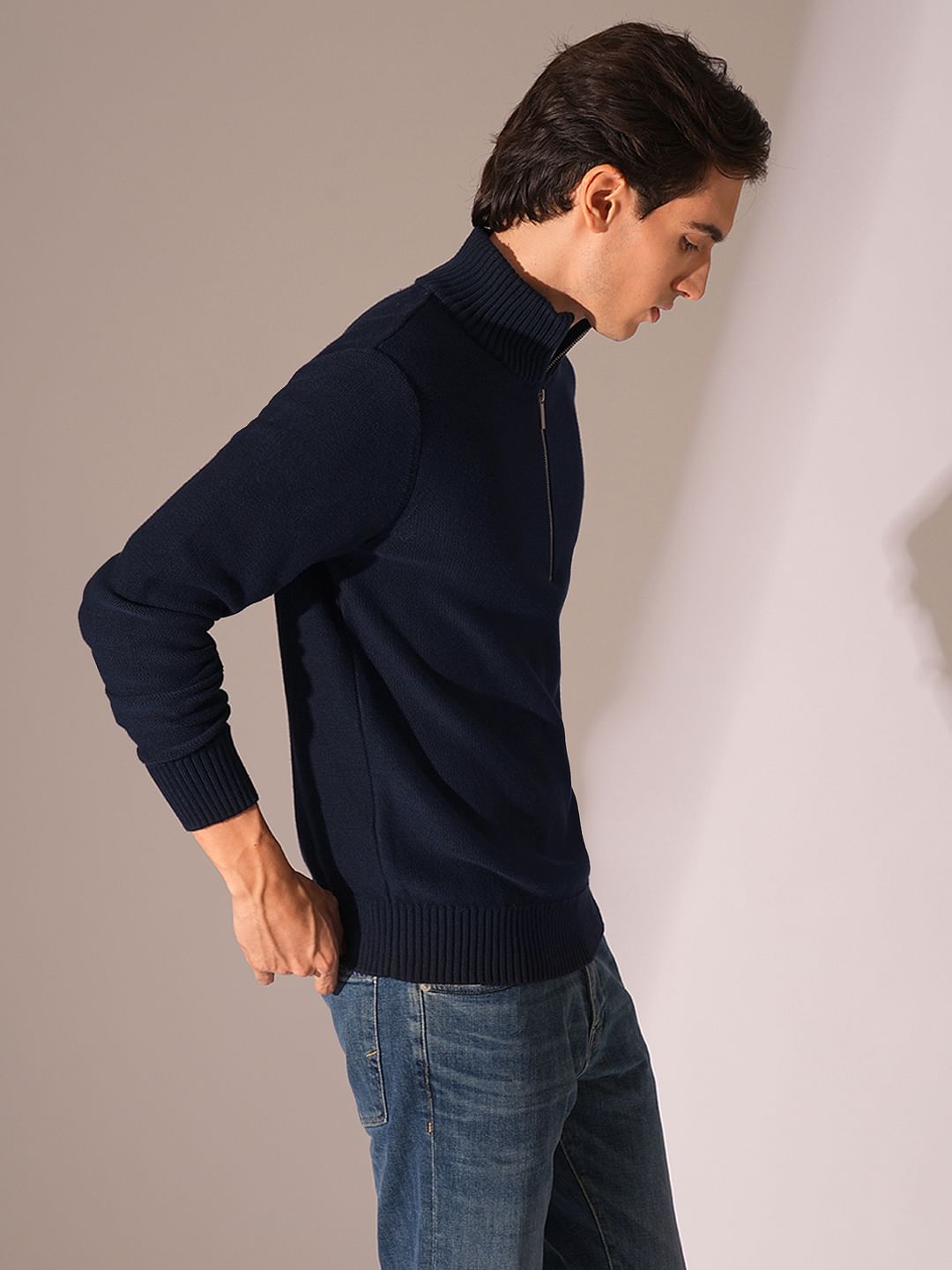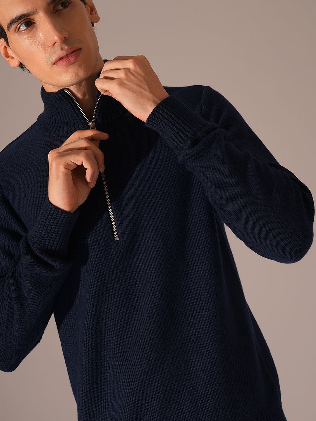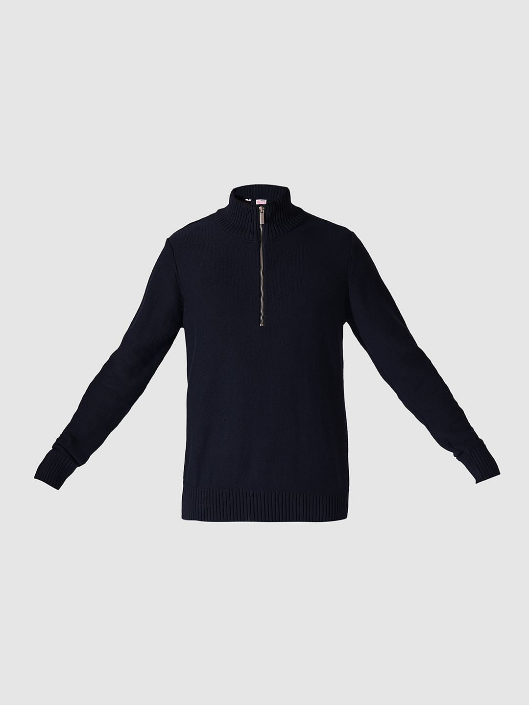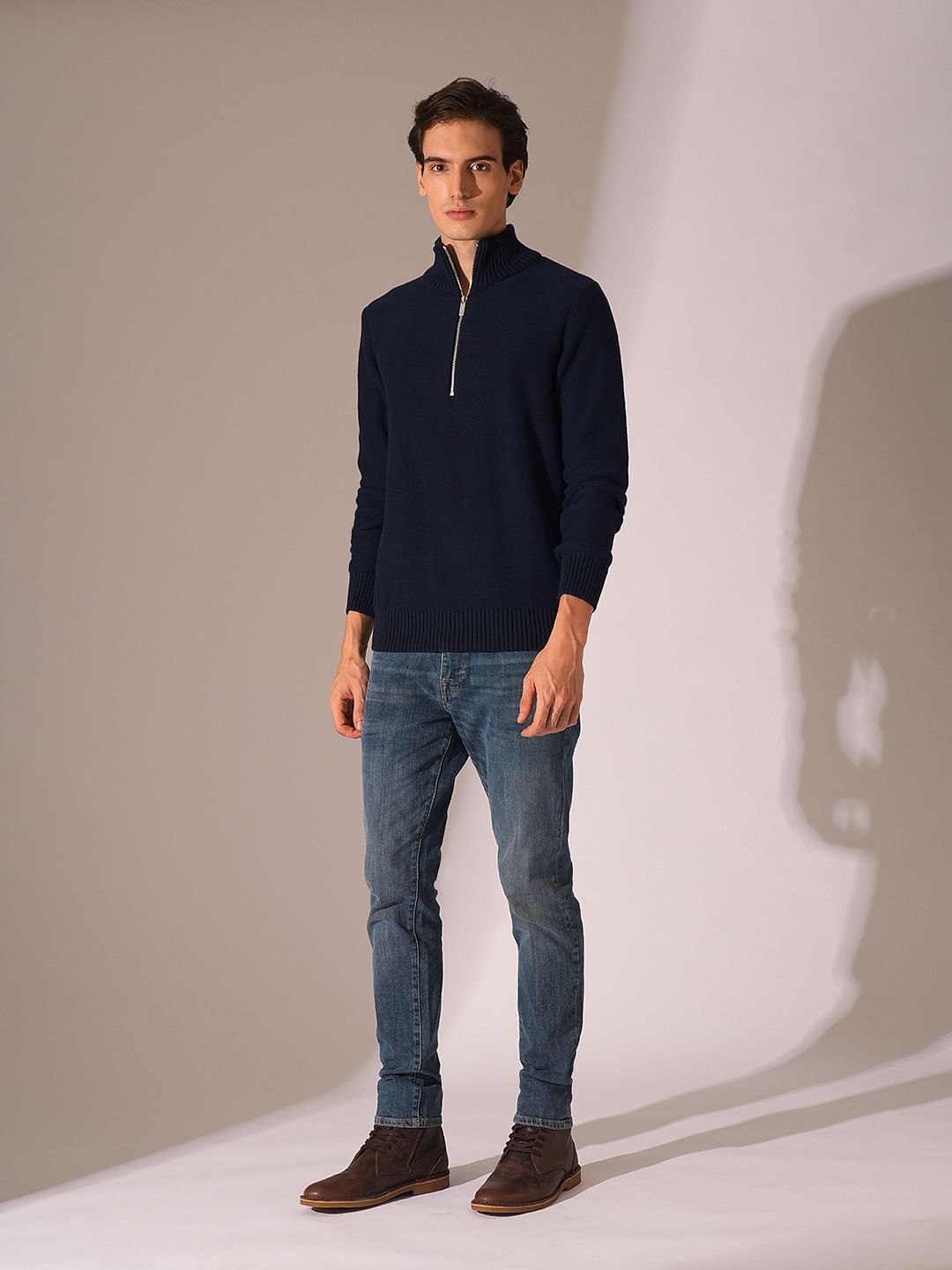 New season, new knitwear. Go classic with this half-zip pullover crafted from 100% cotton. Breathable, durable, and lightweight, it’s perfect for the early autumn chill and can be worn zipped up or open to reveal a striped tee or shirt. Style it with denim and leather boots.