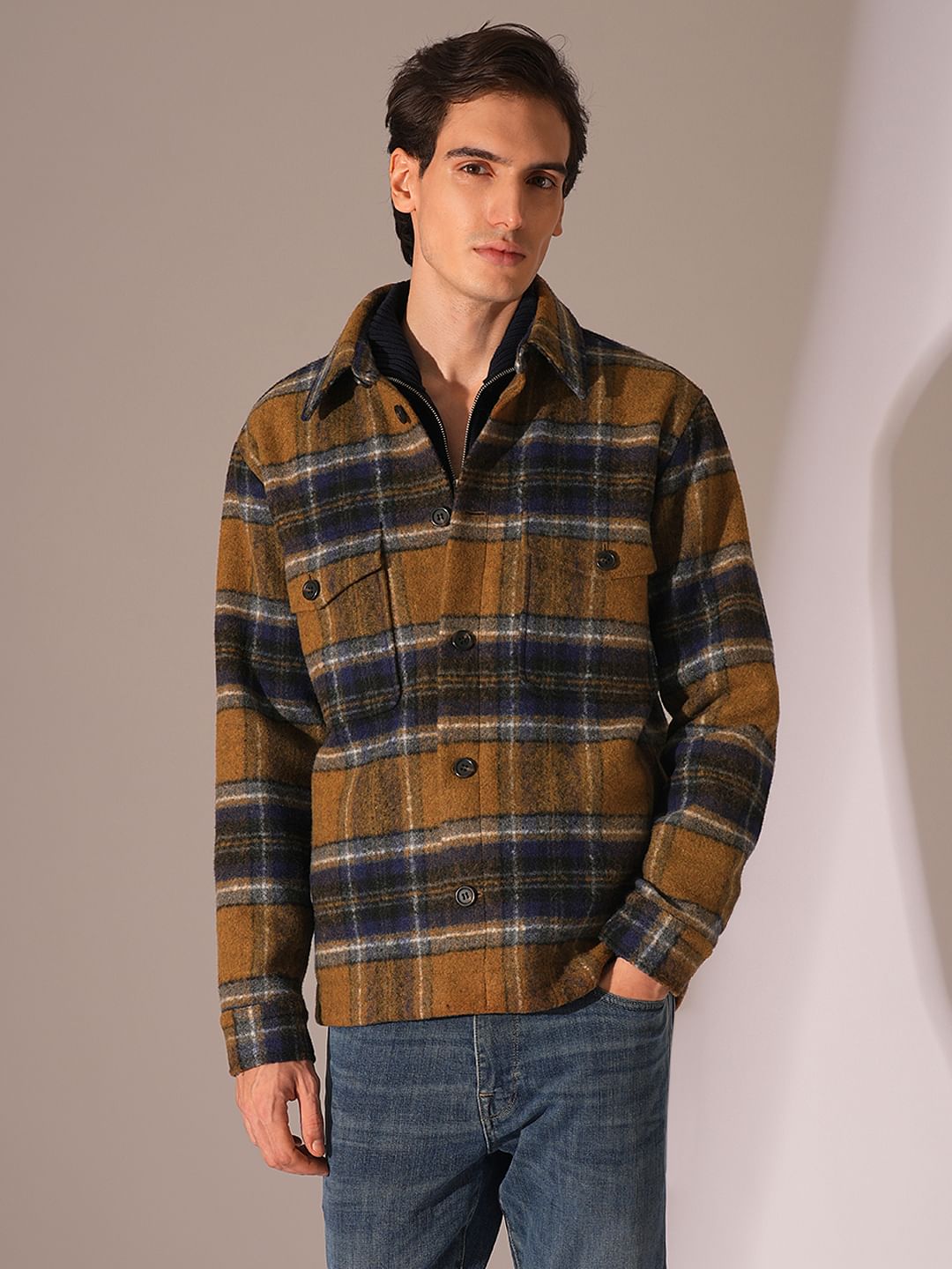 Taken from the archives, this checked shacket combines function and form for a modern take on a classic style. It features long sleeves and buttoned patch pockets inspired by the workwear heritage of this piece, as well as a timeless checked print. Style it with dark-wash denim and suede boots.
