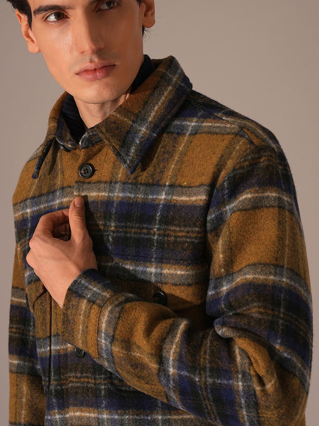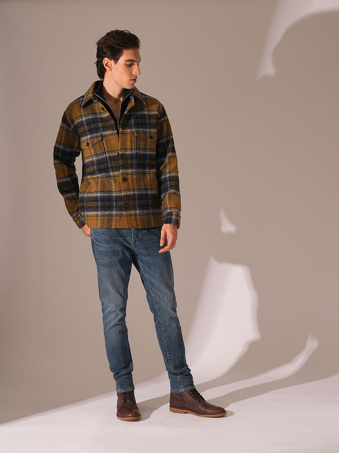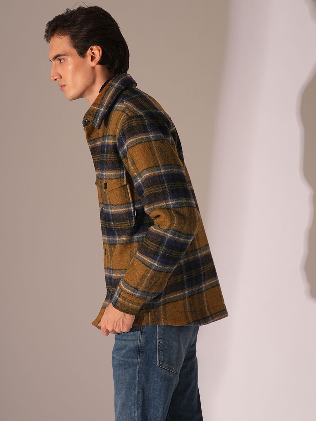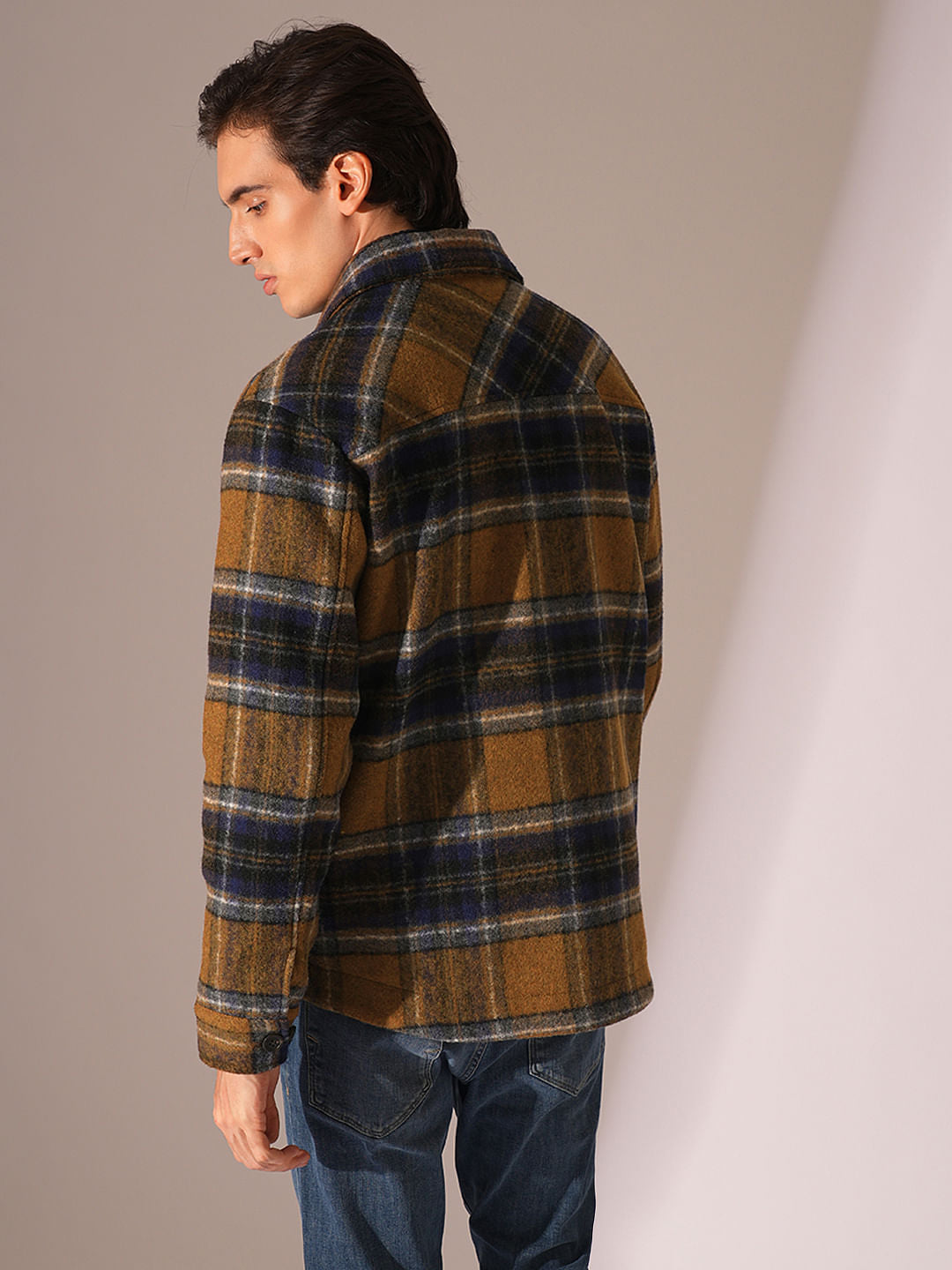 Dark Brown Check Print Shacket