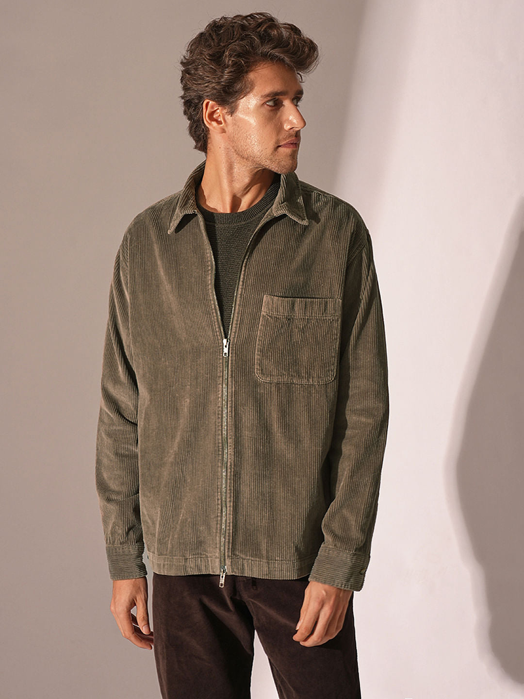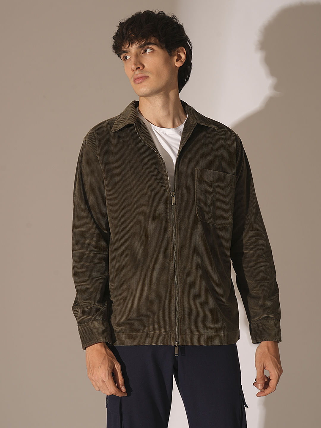 Elevate your weekend wardrobe with this zipped corduroy overshirt. It has a unique two-way zip-up front that you can adjust to show an additional layer underneath and is made from 100% lightweight and breathable cotton. Wear it with a striped tee, dark-wash denim, and leather trainers.