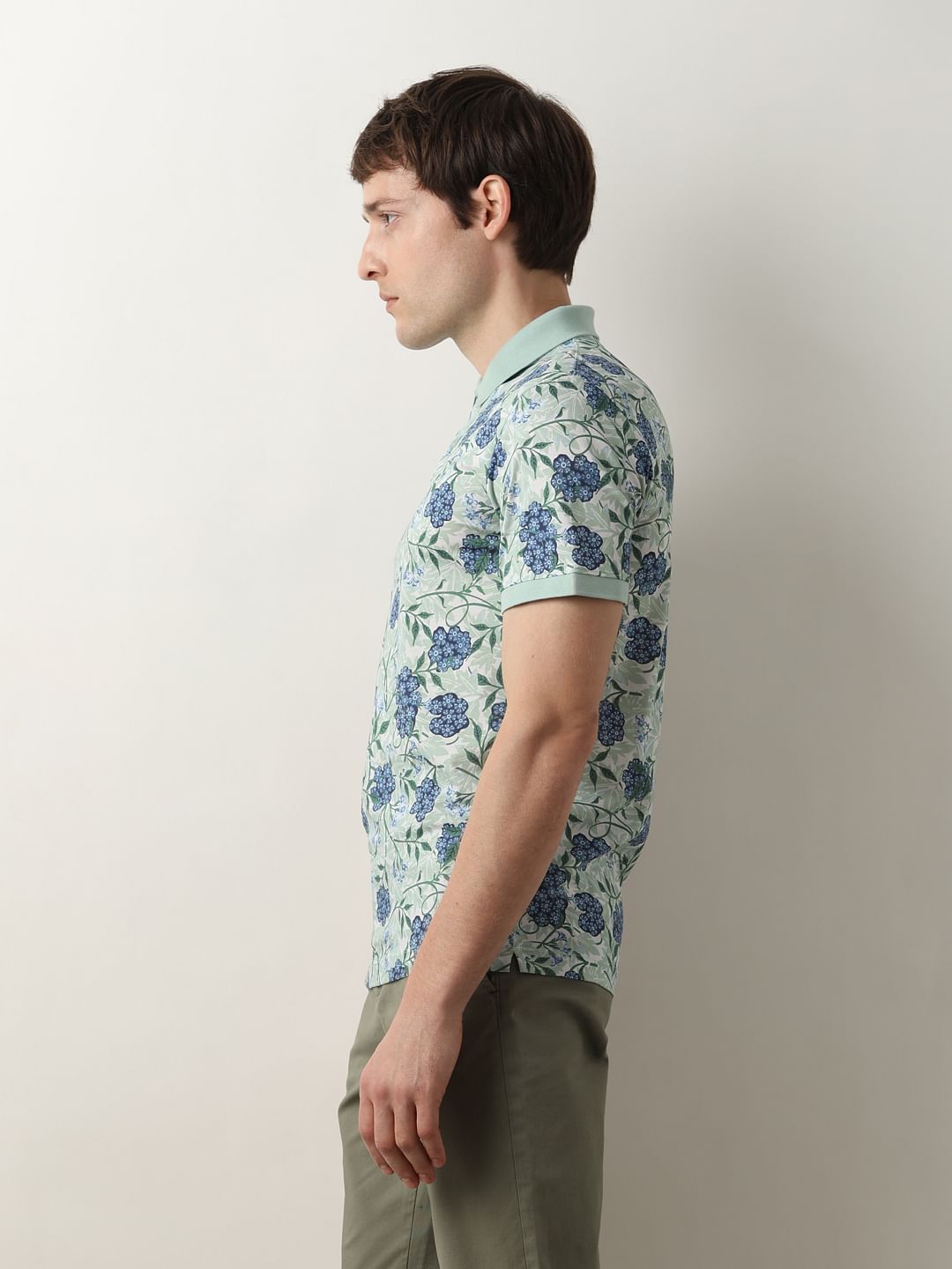Introducing our exquisite men's floral-printed polo t-shirt, meticulously crafted from luxurious 100% cotton fabric. Immerse yourself in unparalleled comfort with its tailored slim fit and enjoy a touch of sophistication with the short sleeves. Elevate your style effortlessly – where comfort meets class.