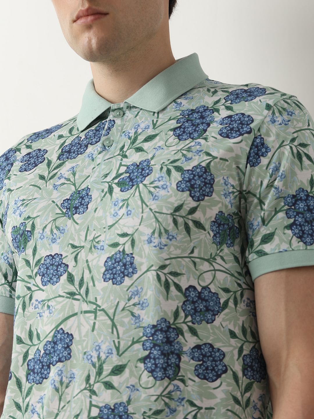 Blue Floral Print Polo T-Shirt