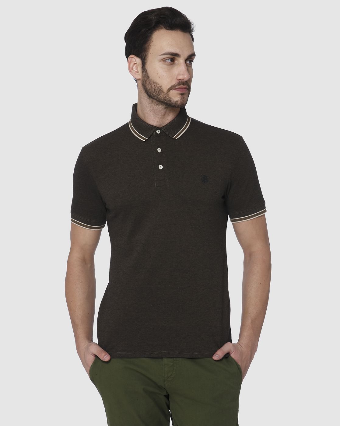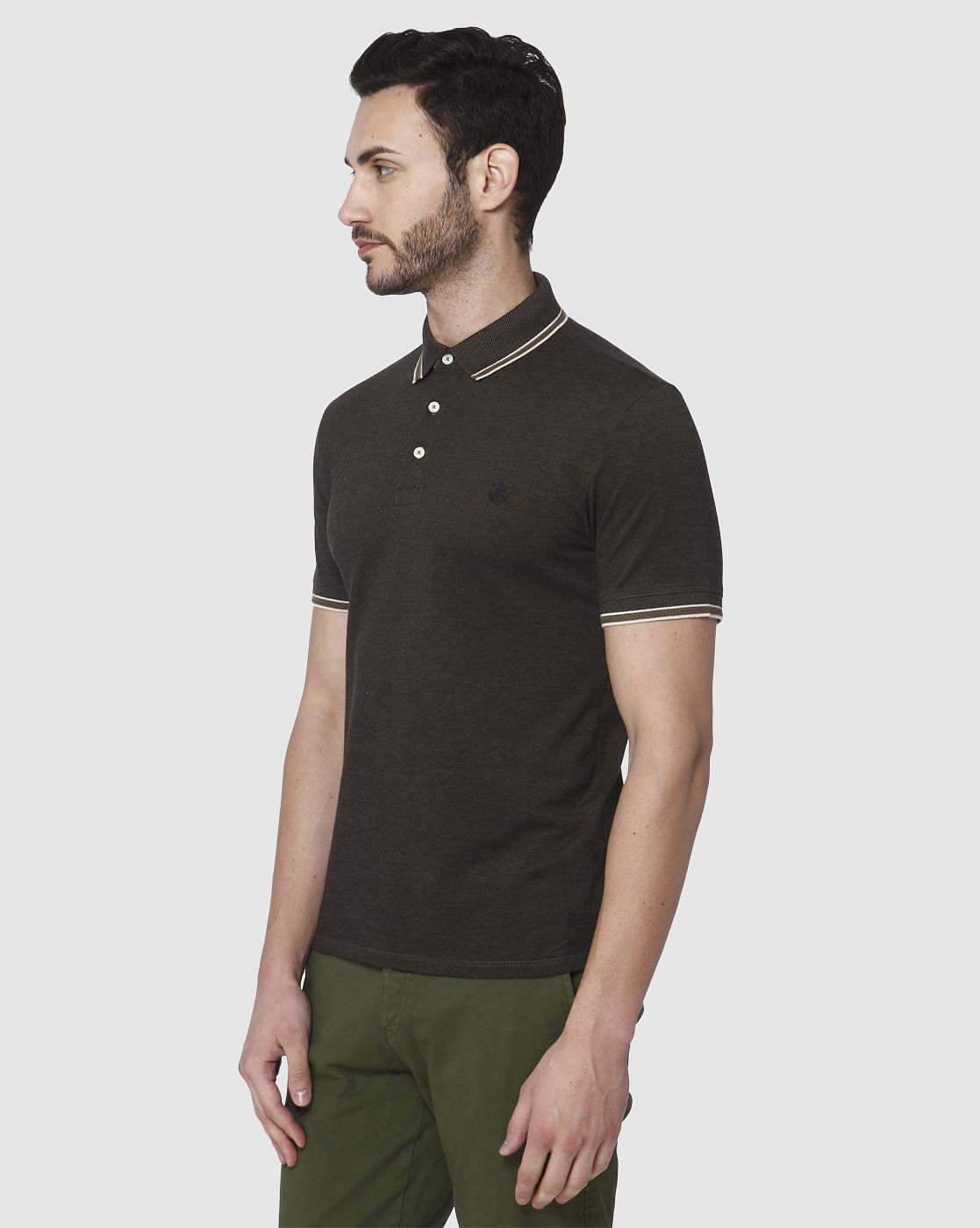 Dark Brown Contrast Tipping Slim Fit Polo Neck T-Shirt