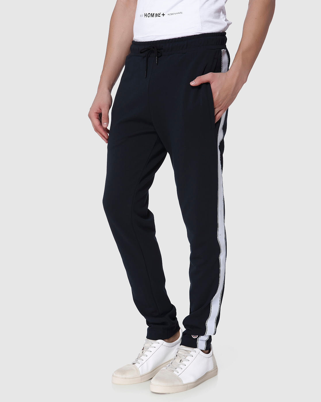 Comfort Takes A New And Stylish Form With This Pair Of Navy Blue Sweatpants From Selected. Cut In A Regular Fit For Comfort, These Sweatpants Feature A Smart Tape Detail Pattern That Lends It A Smart Look. Plus, The Drawstring Ensures Ease Of Wear. Team It Up With A Tee And Some Sneakers For A Comfy Yet Trendy Ensemble.