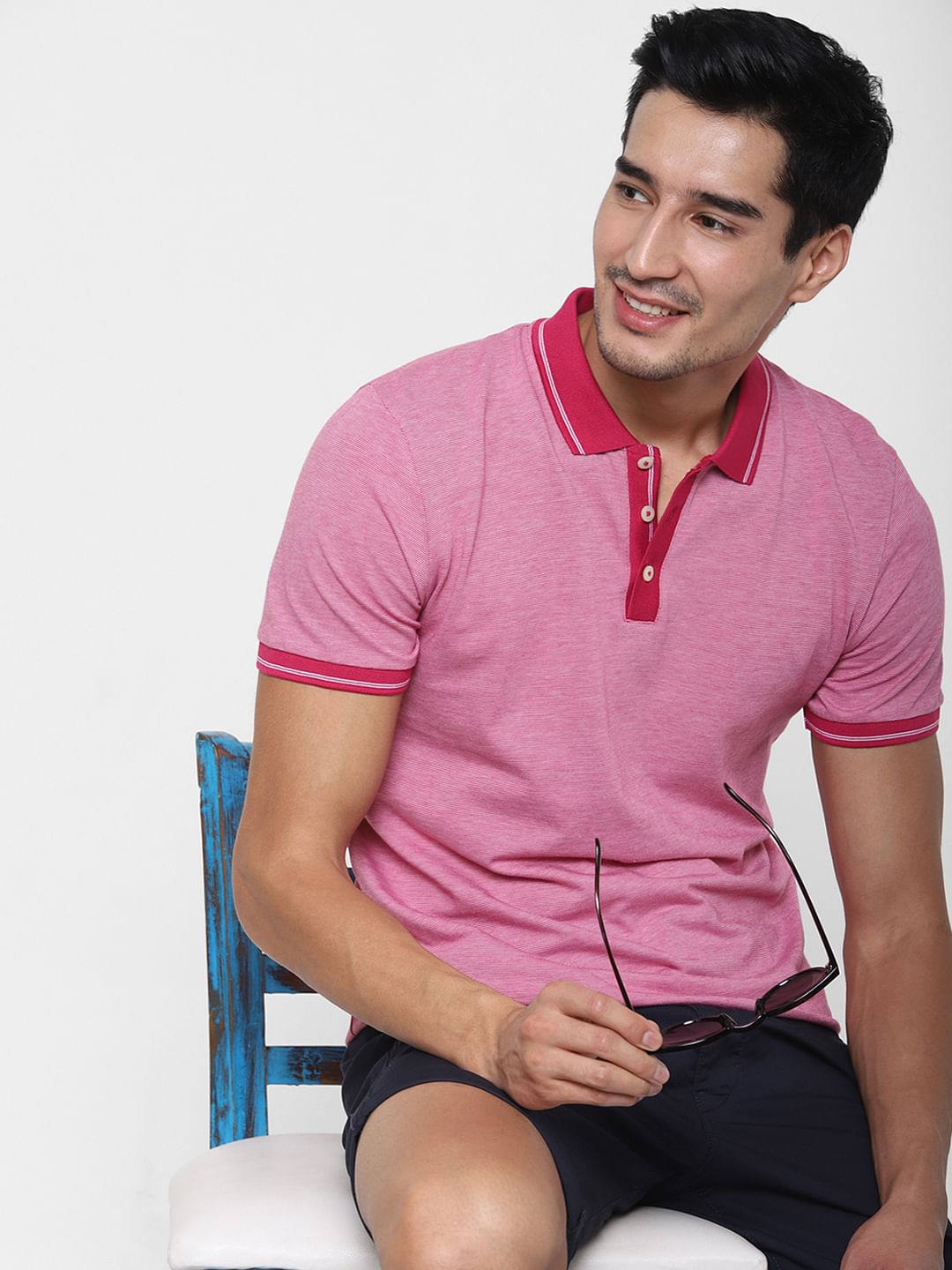 Exuding a classy aura in vibrant hue and contrast tipping detail is this pink polo tee from SELECTED Homme. Hit that noon-party by the beach looking classy as you team up this tee with navy blue chinos and sneakers.