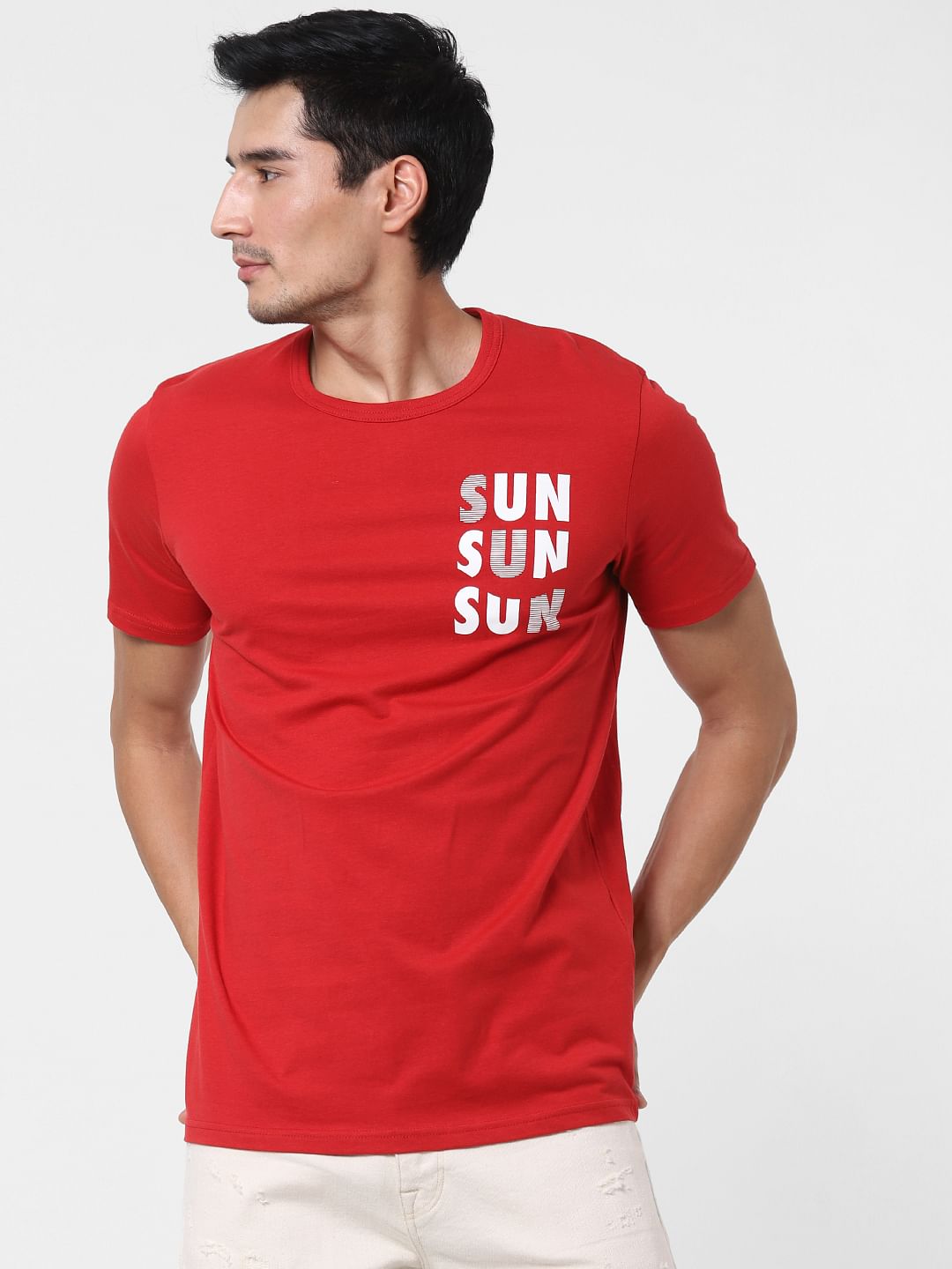 Red Text Print Crew Neck T-Shirt