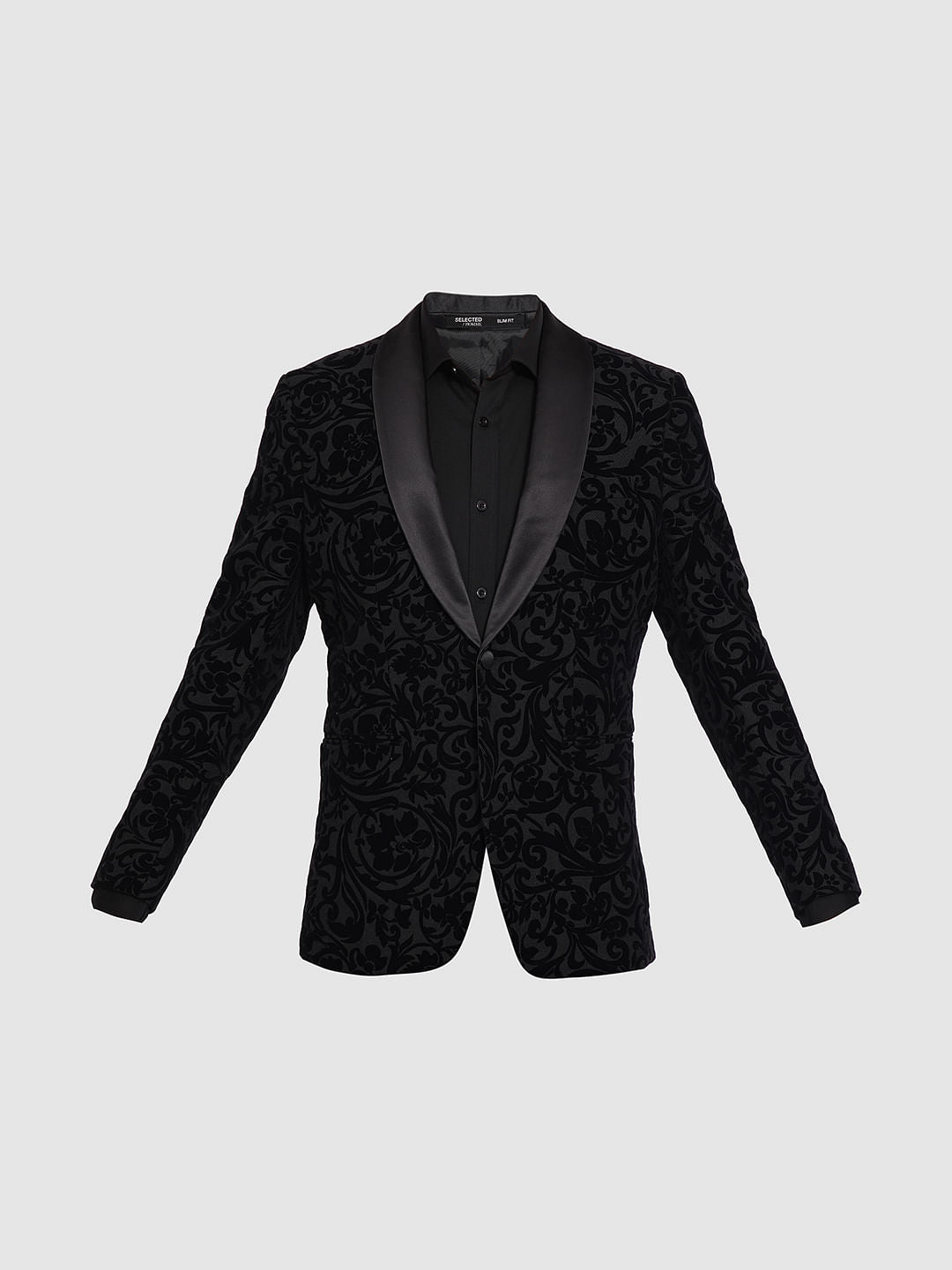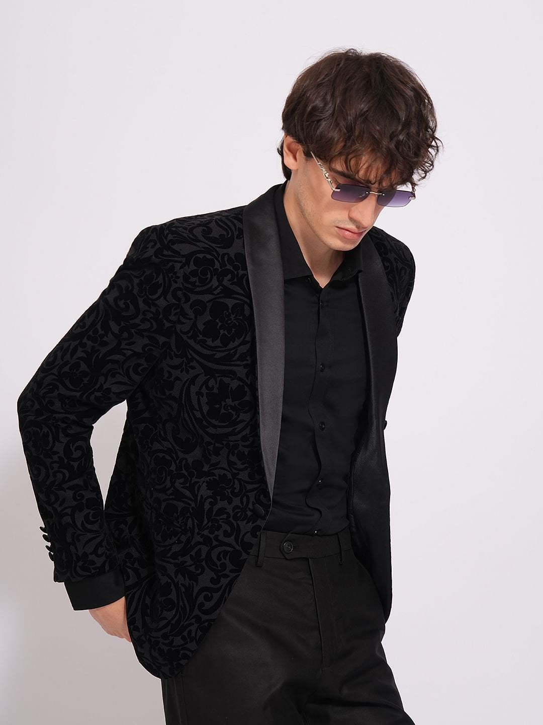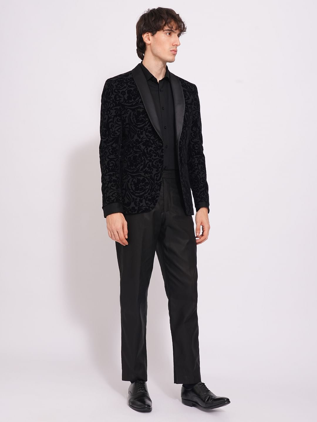 Elevate your wardrobe with this Black Jacquard Blazer, where classic meets contemporary. Crafted with a subtle jacquard pattern, it offers just the right amount of texture and refinement, making it perfect for evening occasions or smart-casual settings. Tailored to perfection, this blazer exudes sophistication while providing a comfortable fit. Pair it with tailored trousers or dark jeans for an effortlessly stylish look.