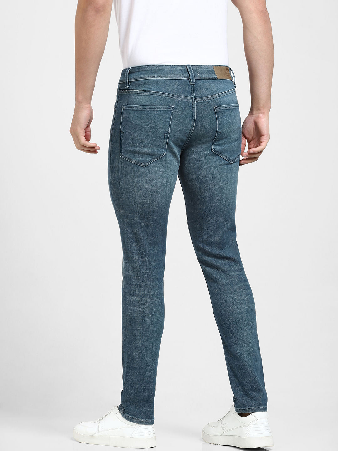 Men's blue slim fit jeans made in Turkey from the finest organic cotton with enough stretch to offer a comfortable fit for an all day wear. Features a subtle washed look with a classic zip-button closure, pockets, belt loops, and a logo branding placket. Style with a cardigan or a polo tee and sneakers for a smart-casual look that'll take you to work and beyond.