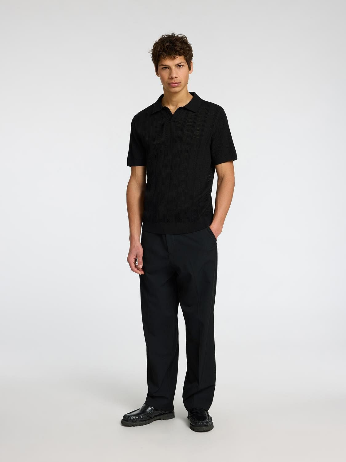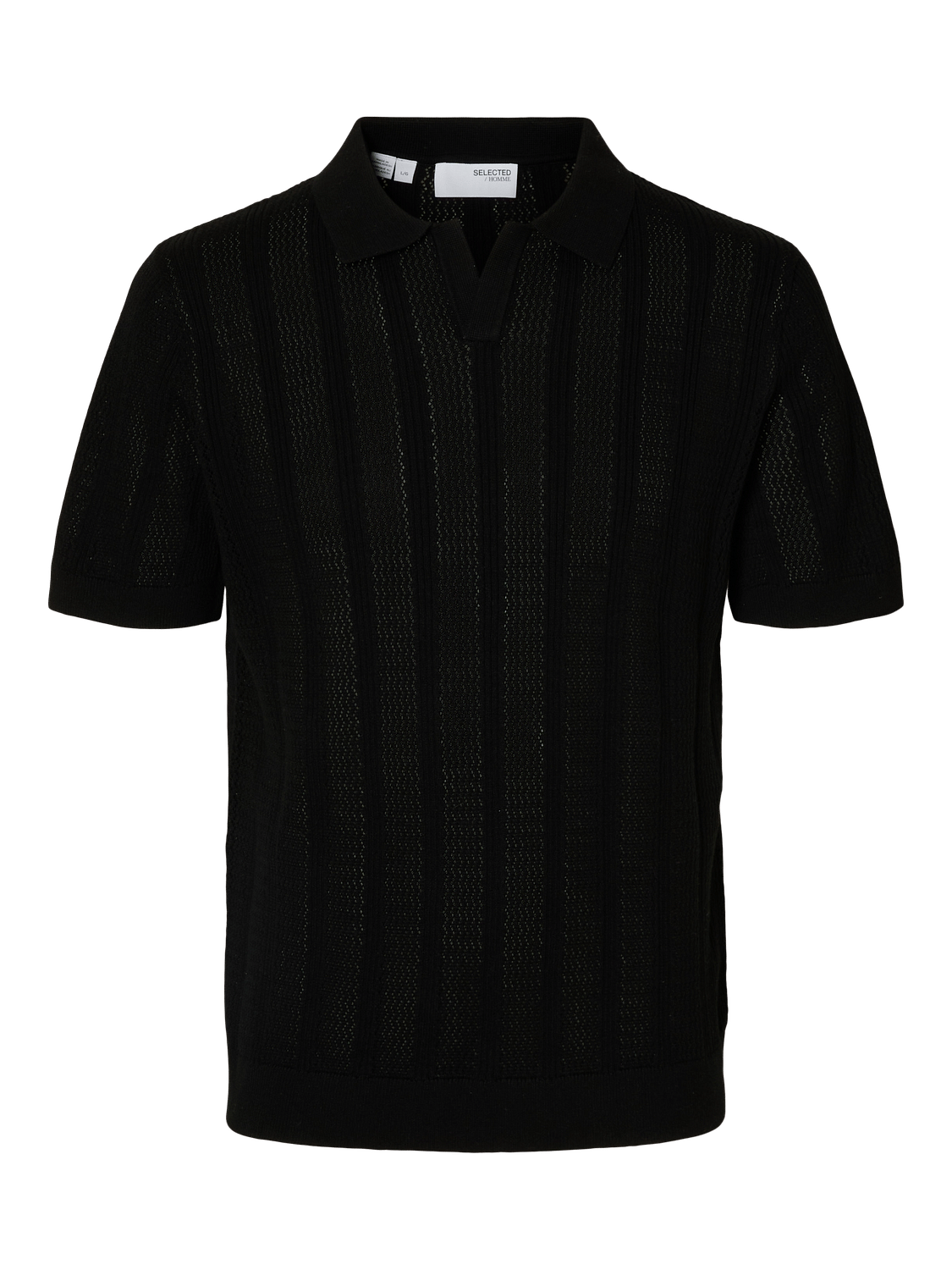 Black Crochet Split Neck Polo