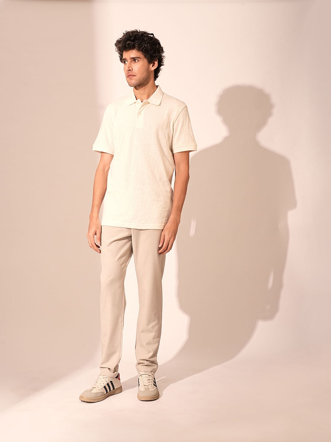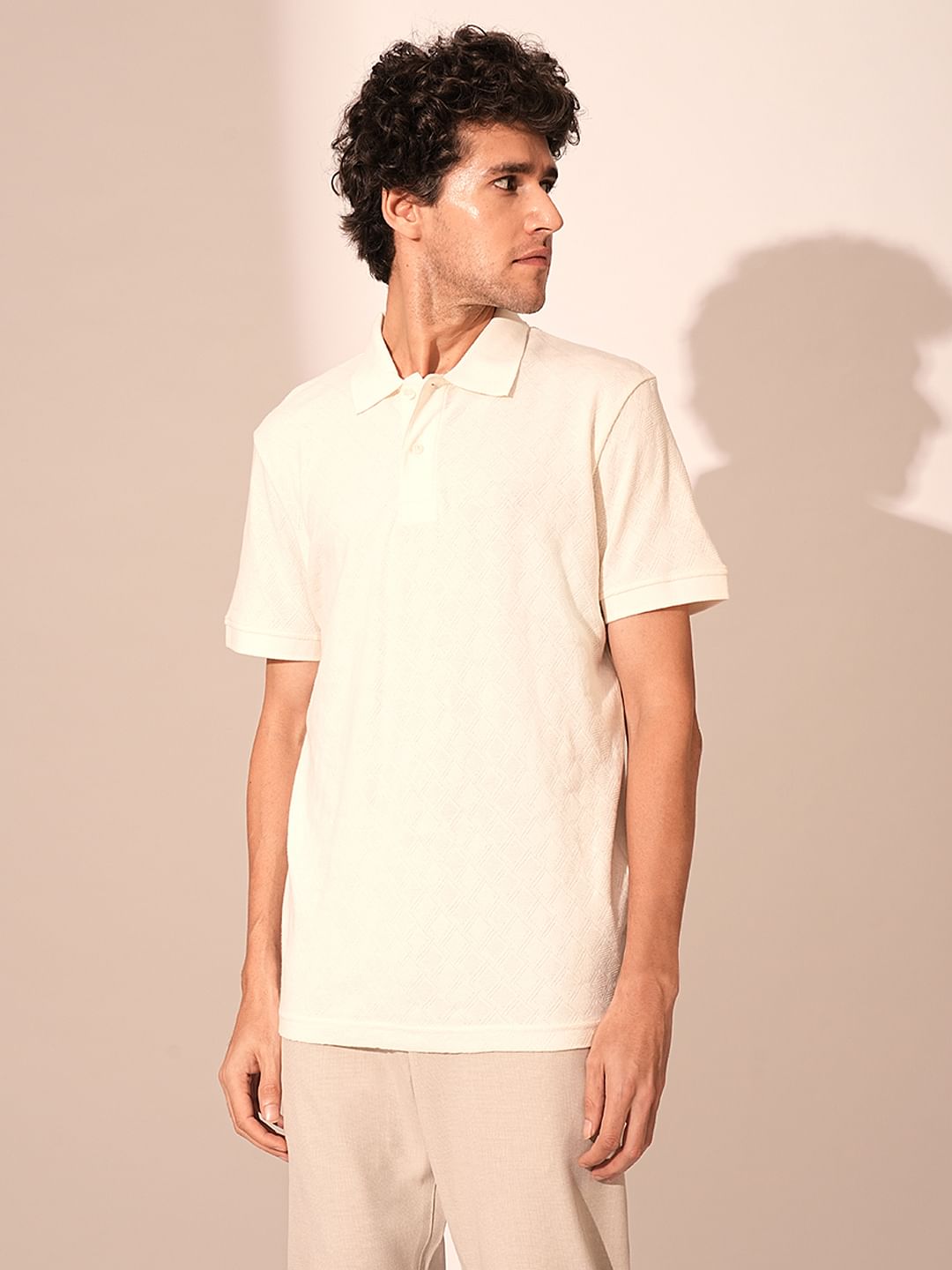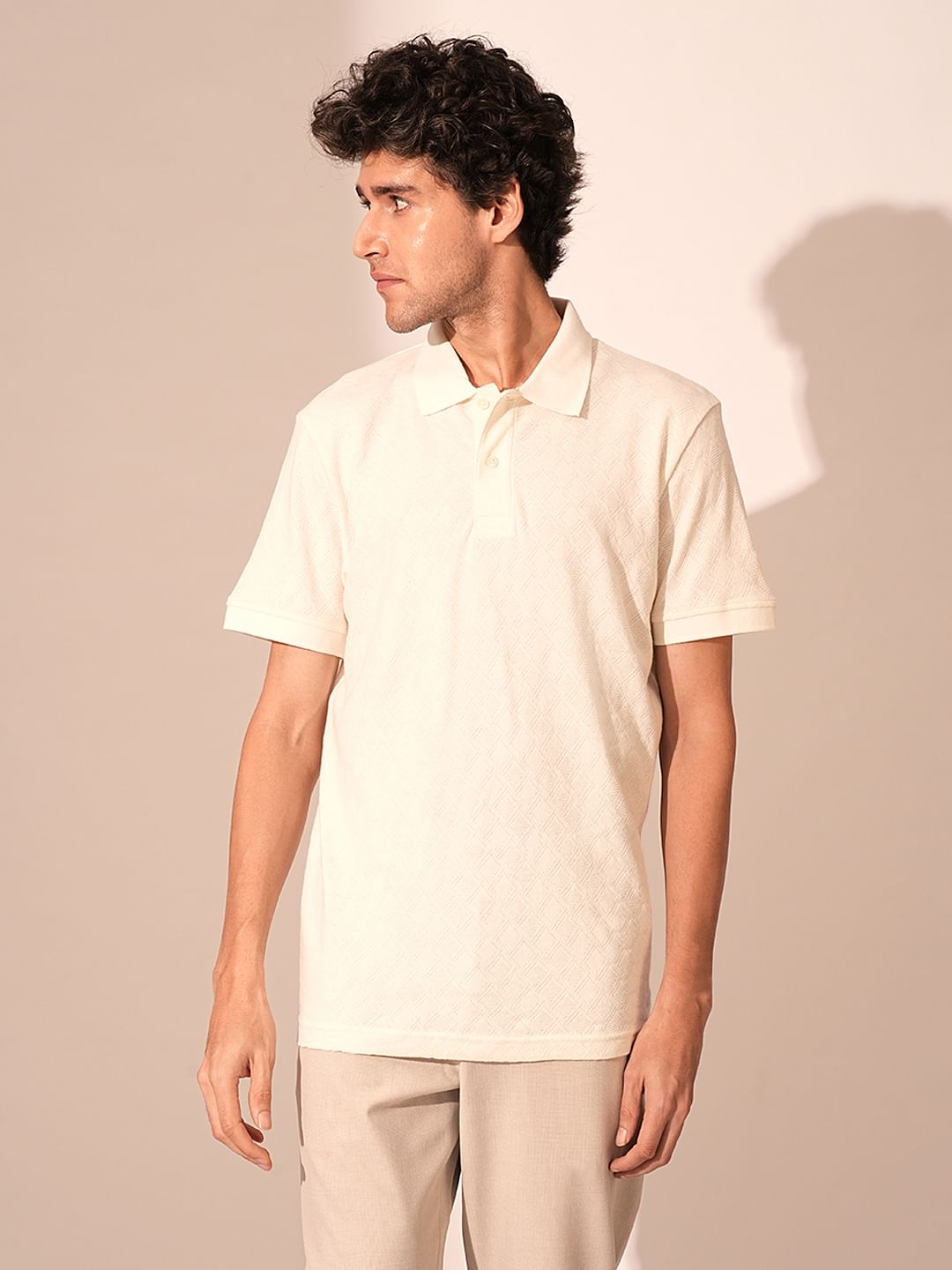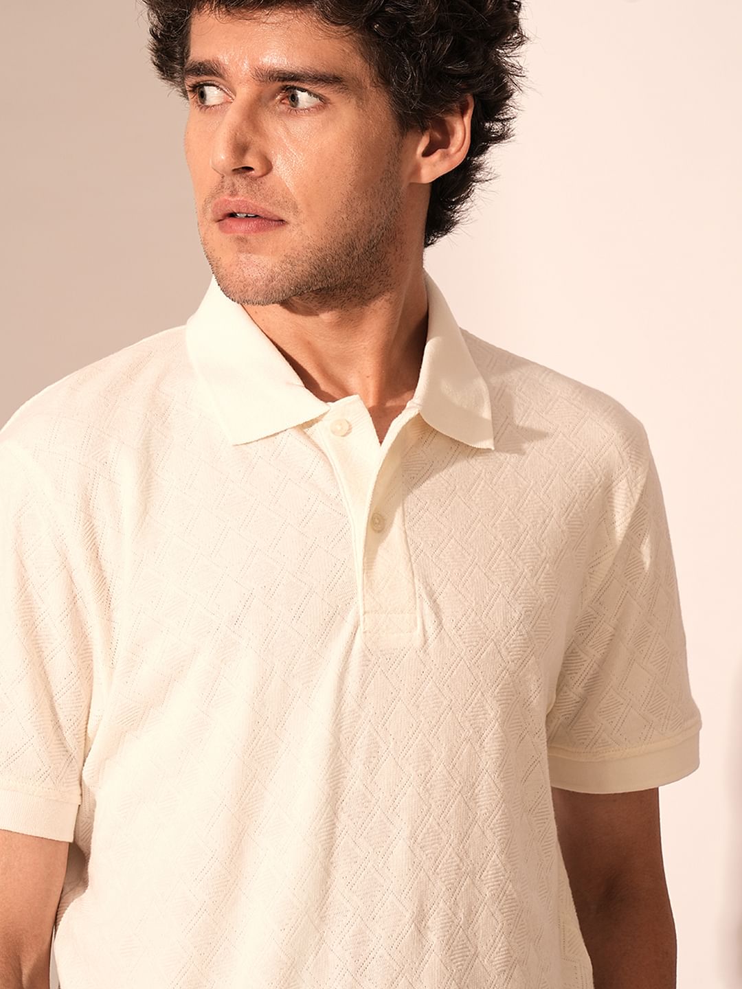Beige Jacquard Organic Cotton Polo