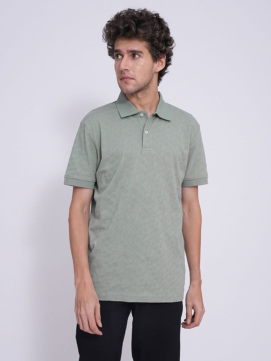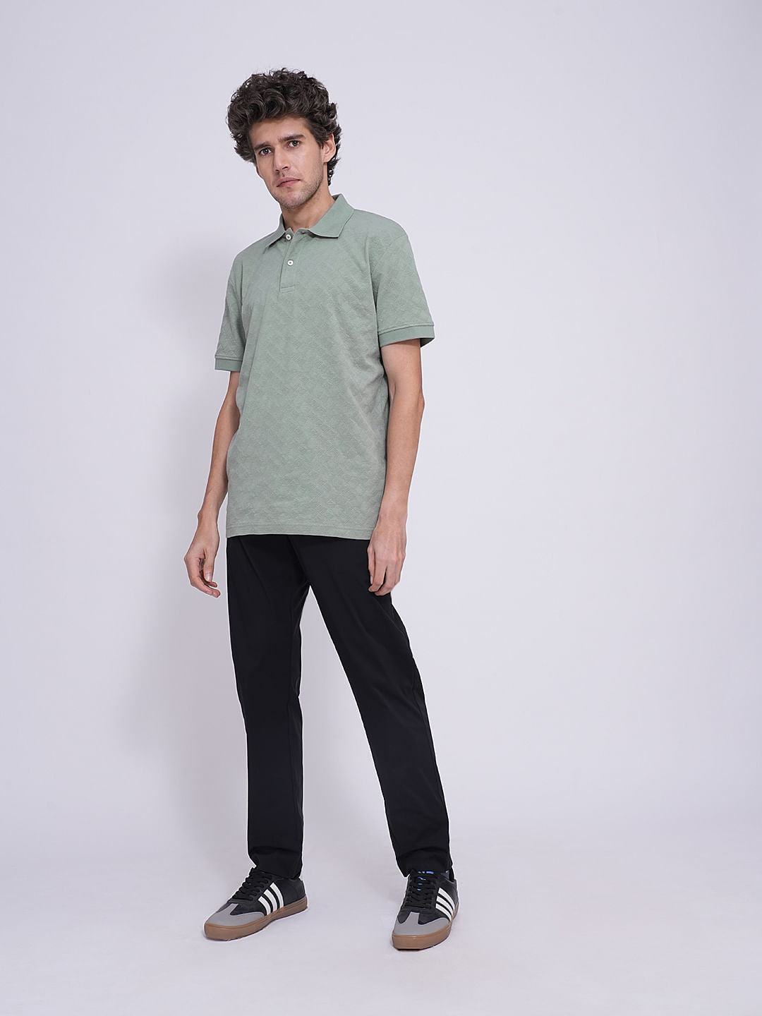 Crafted from premium ribbed jacquard fabric, this regular-fit short sleeve polo offers both comfort and refined style. Ideal for the modern man seeking a timeless, versatile wardrobe staple.