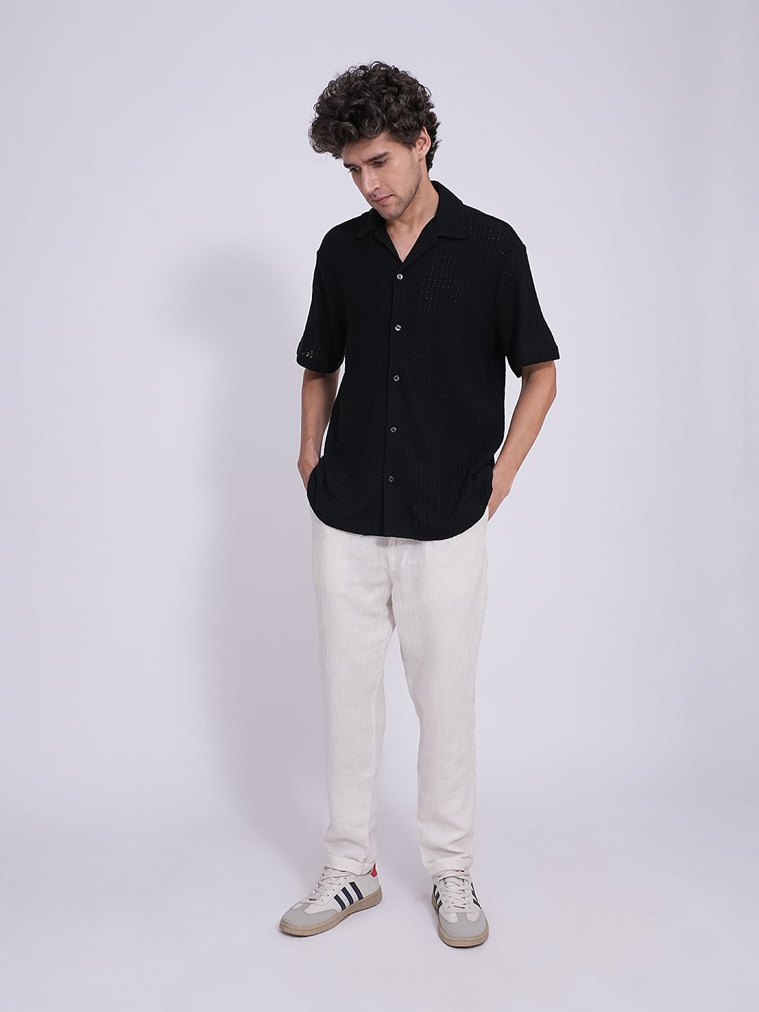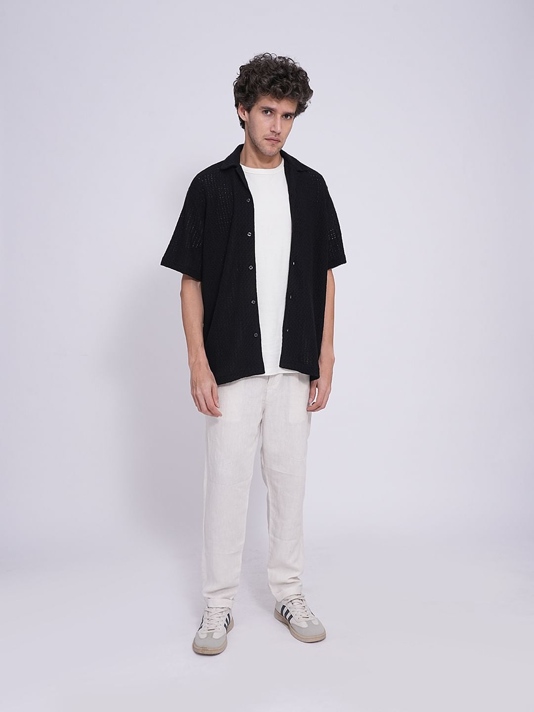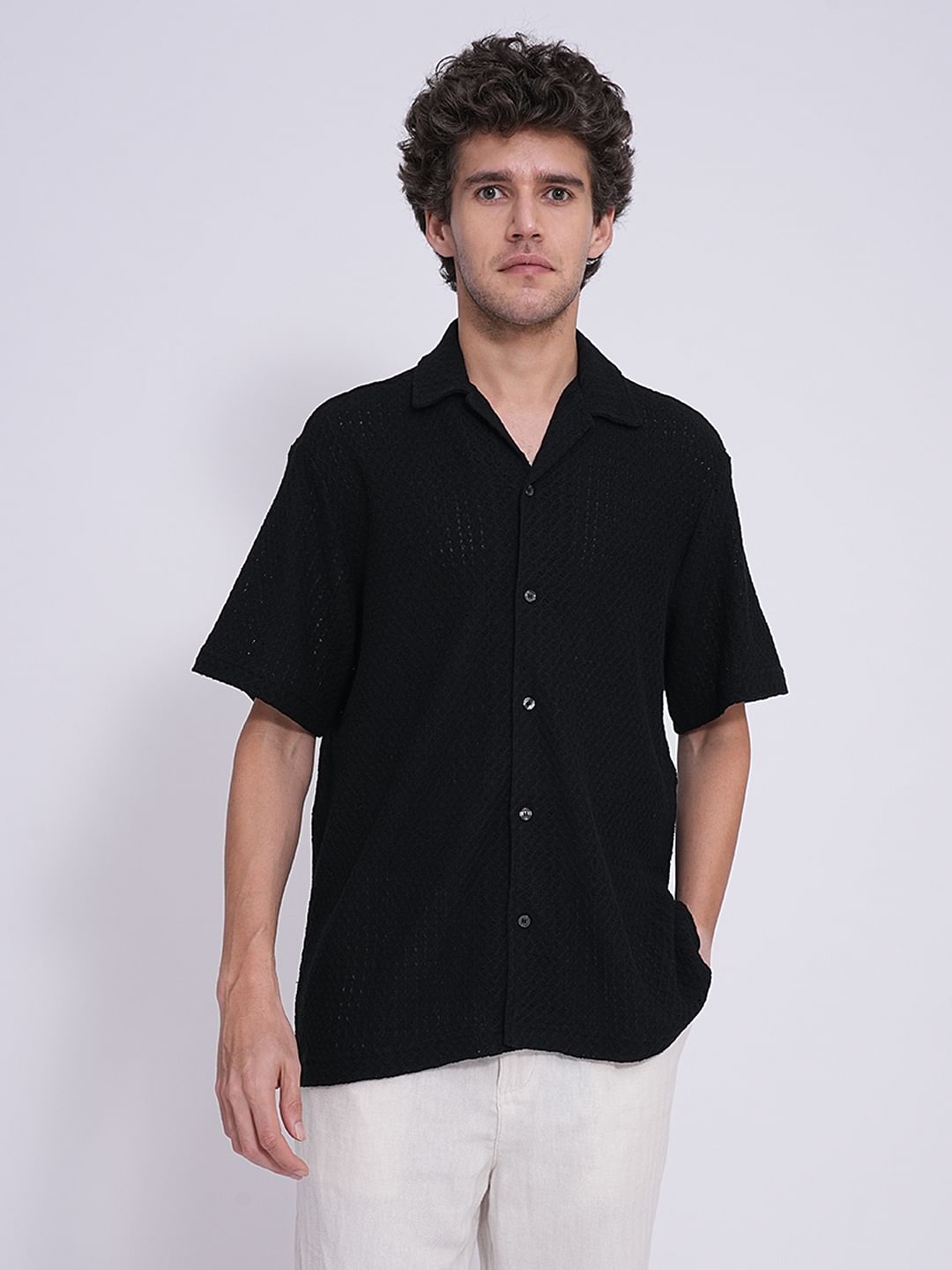 Crafted from organic cotton, this men's jacquard jersey shirt offers a relaxed fit for ultimate comfort. The intricate jacquard weave adds texture, while the no-wash finish enhances the shirt's natural softness and durability. A timeless addition to any premium wardrobe.