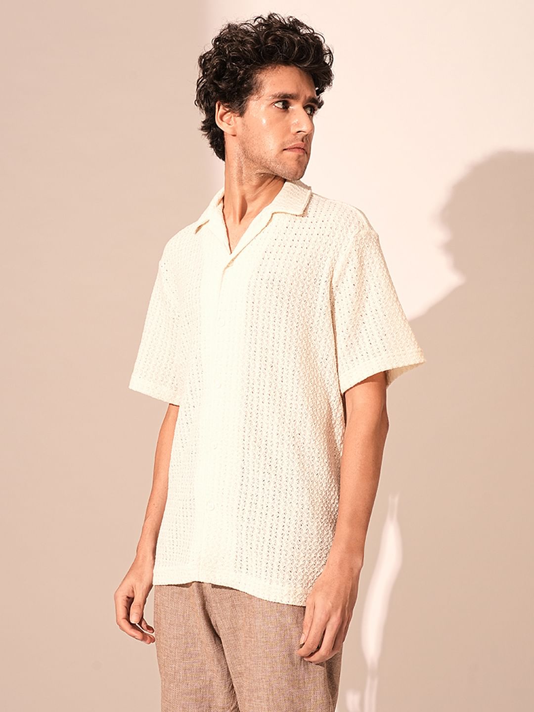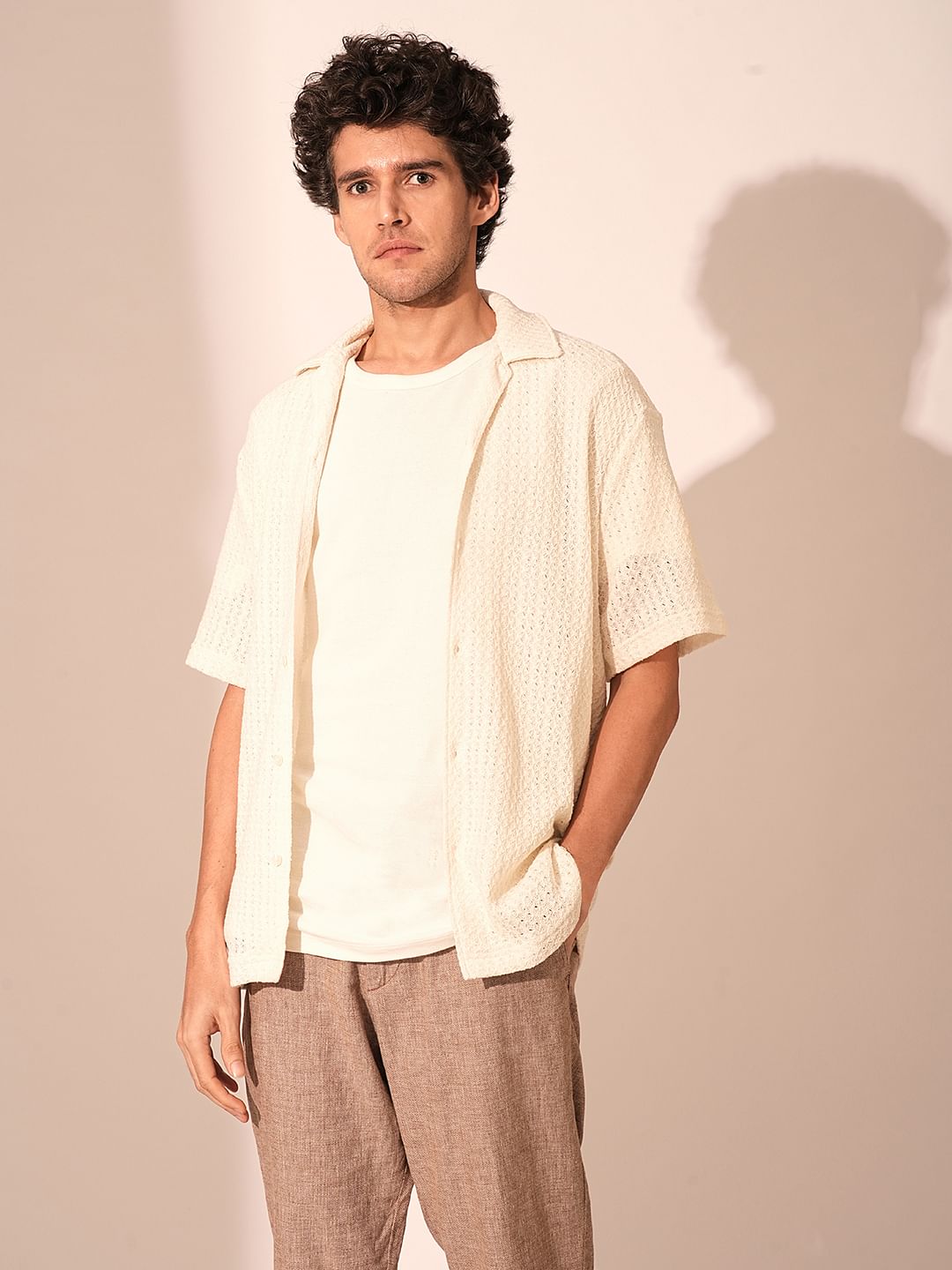Crafted from organic cotton, this men's jacquard jersey shirt offers a relaxed fit for ultimate comfort. The intricate jacquard weave adds texture, while the no-wash finish enhances the shirt's natural softness and durability. A timeless addition to any premium wardrobe.
