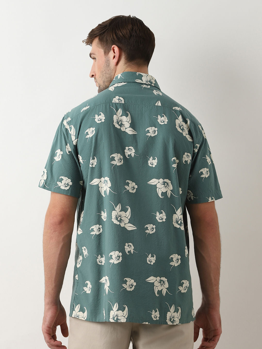 Introducing our Seersucker Short-Sleeved Shirt for men, exuding timeless elegance and comfort. Crafted in a regular fit, this shirt effortlessly combines style and ease, making it a wardrobe staple for any occasion. Featuring a Cuban collar for a touch of sophistication, and adorned with a subtle yet striking floral print, this shirt embodies refined charm. Elevate your ensemble with this versatile piece, designed to complement your distinguished taste with understated flair.